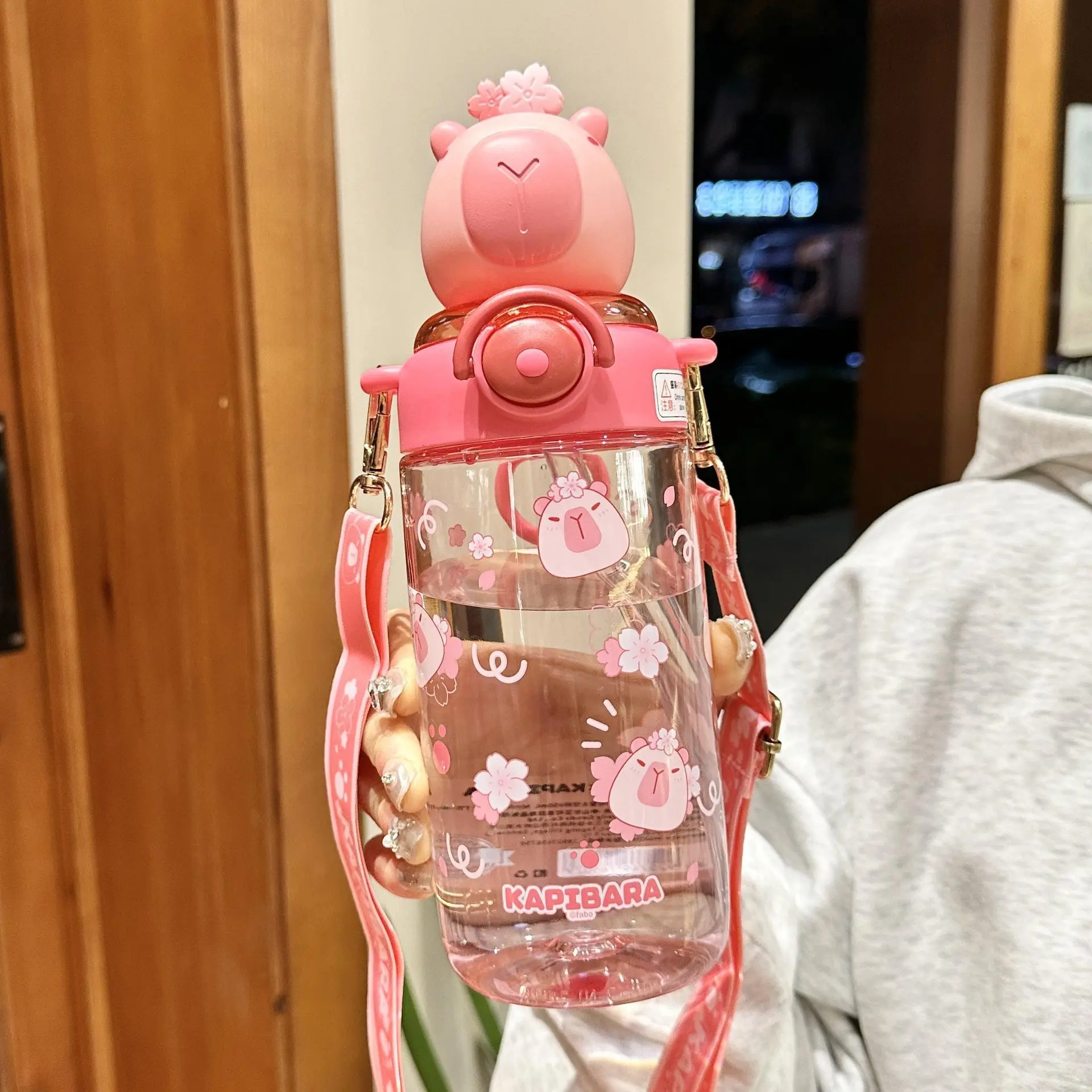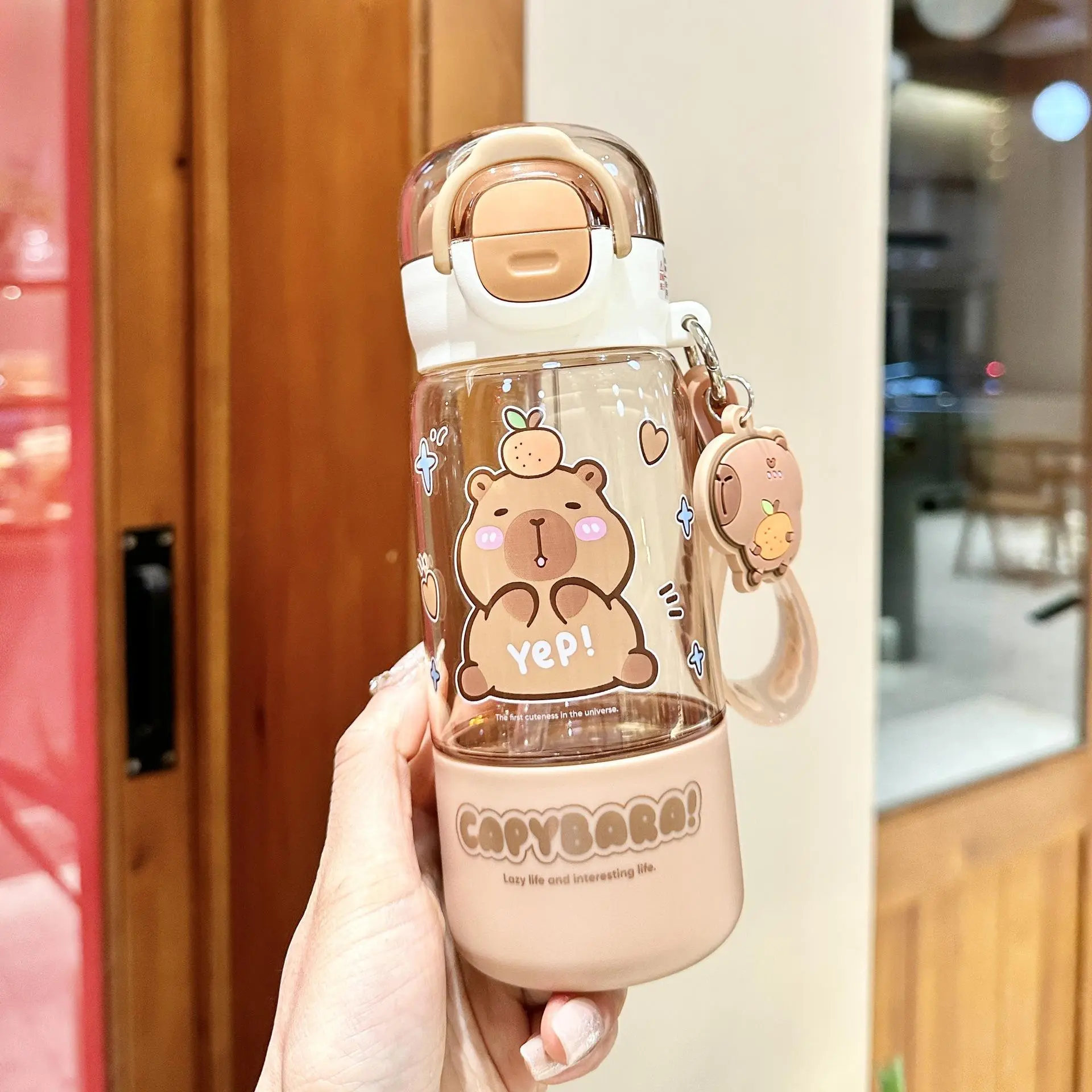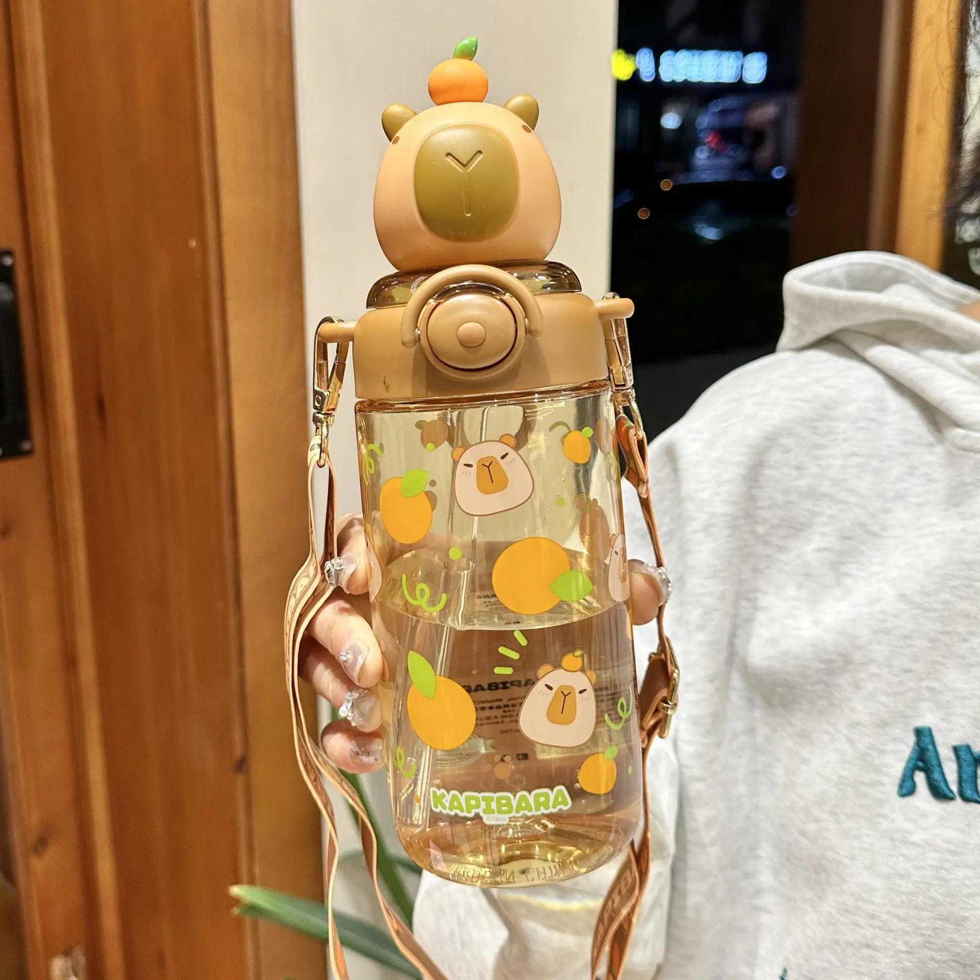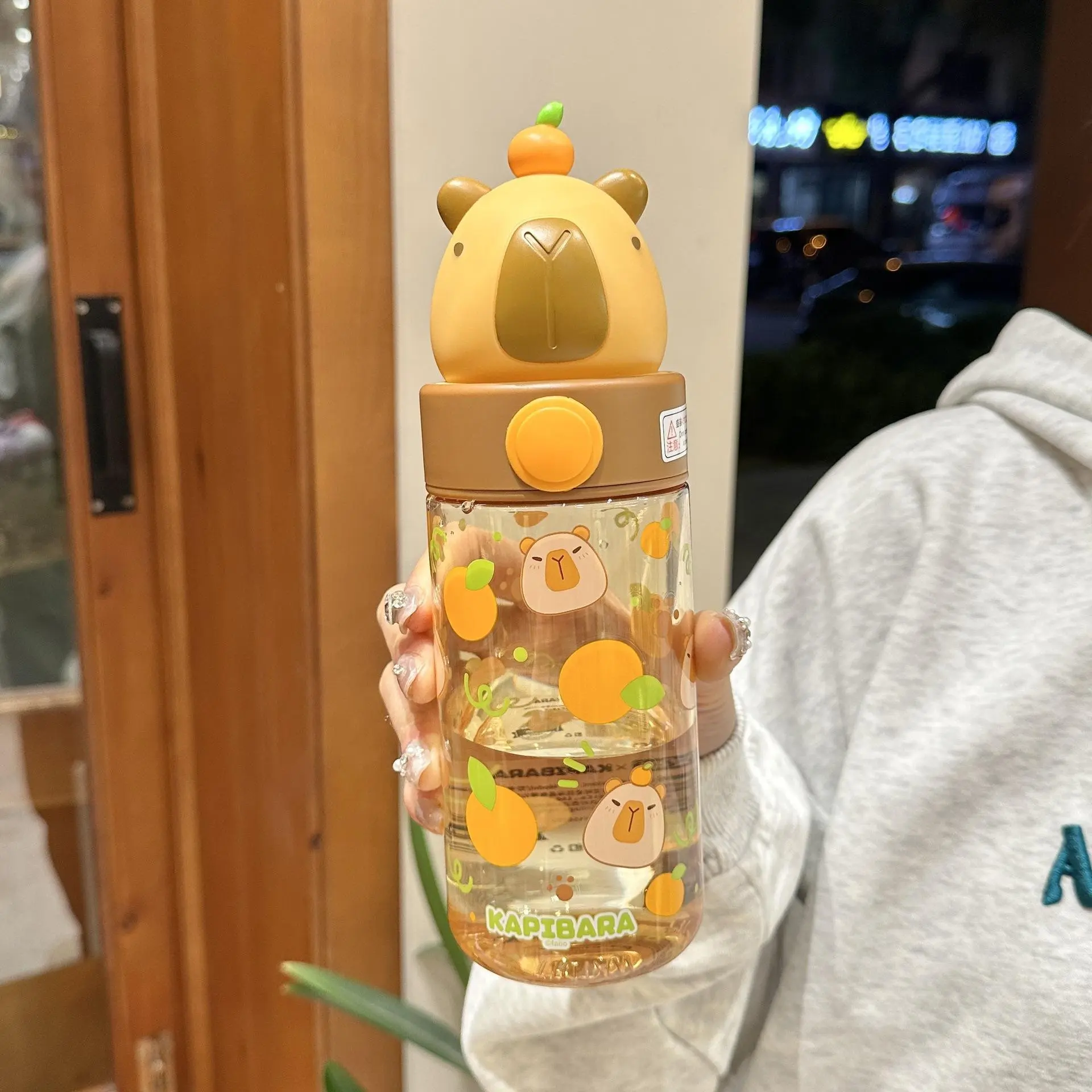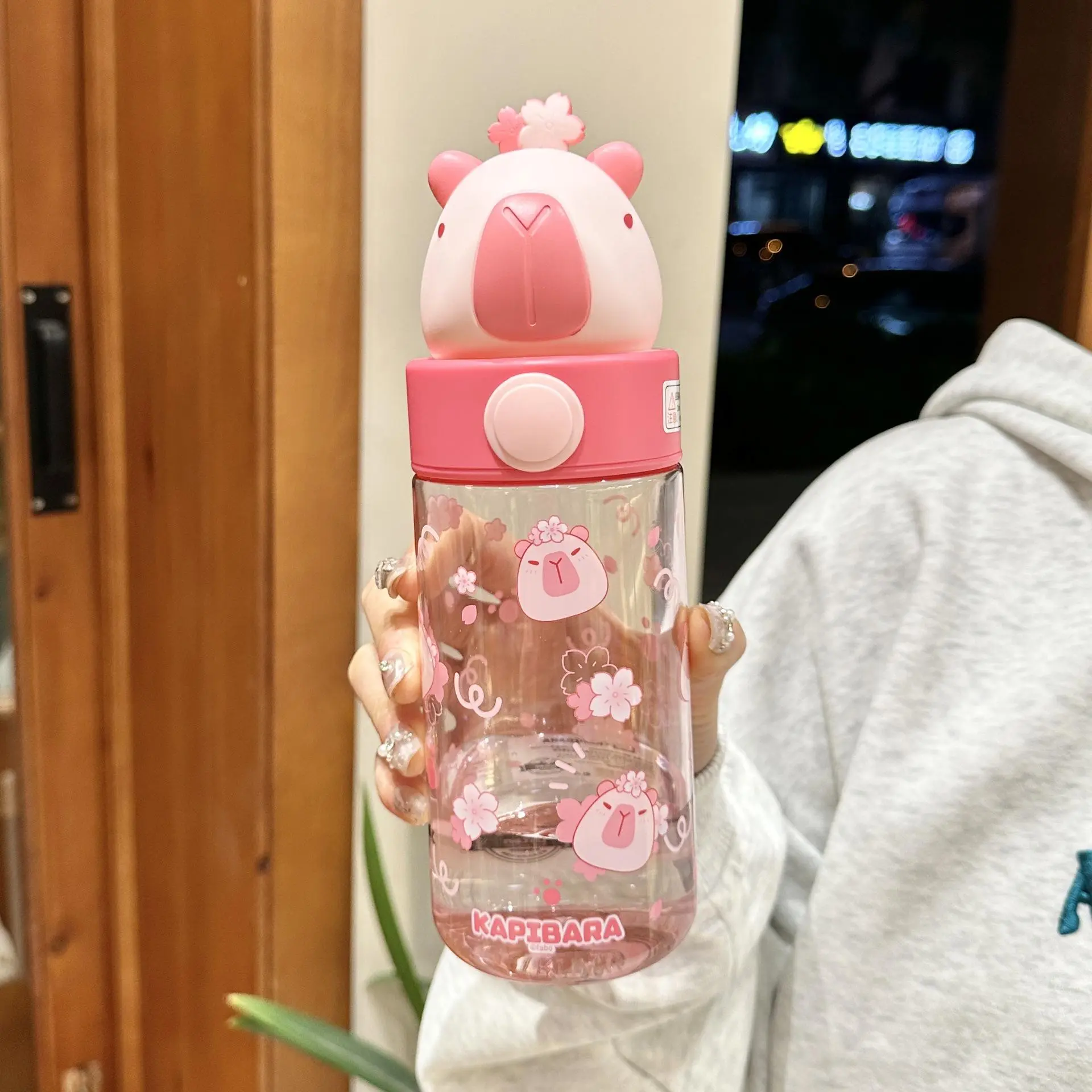 Kawaii Capybara Water Bottle With Straw For Children School Cute Tumbler Aesthetic Tritan Drinking Bottle Gift BPA Free kapibara