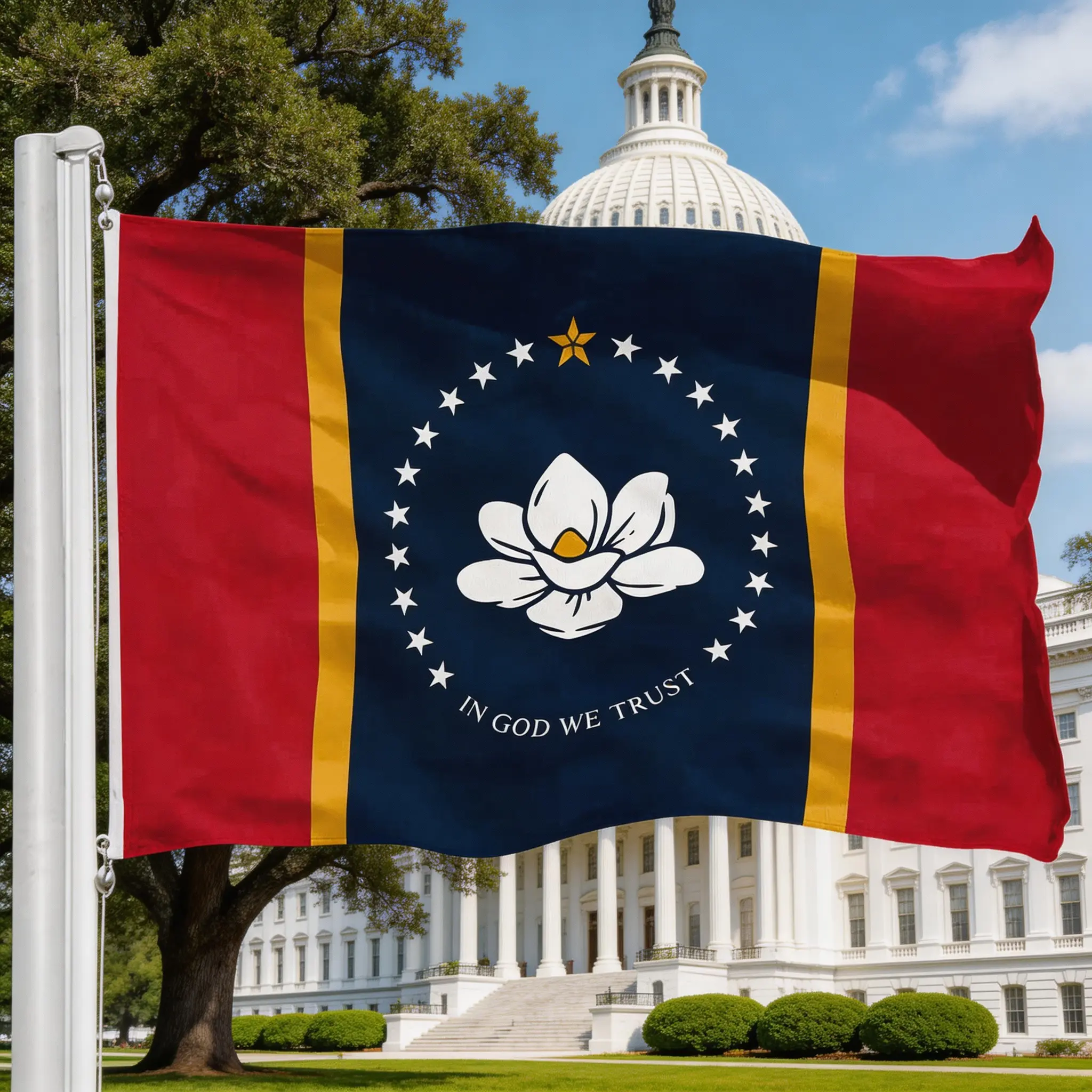 Mississippi State Flag 2020 Version| 3x5 feet| Printed 150D, Indoor/Outdoor, Vibrant Colors, Brass Grommets, Quality Polyester, Much Thicker More Durable Than 100D 75D Polyester