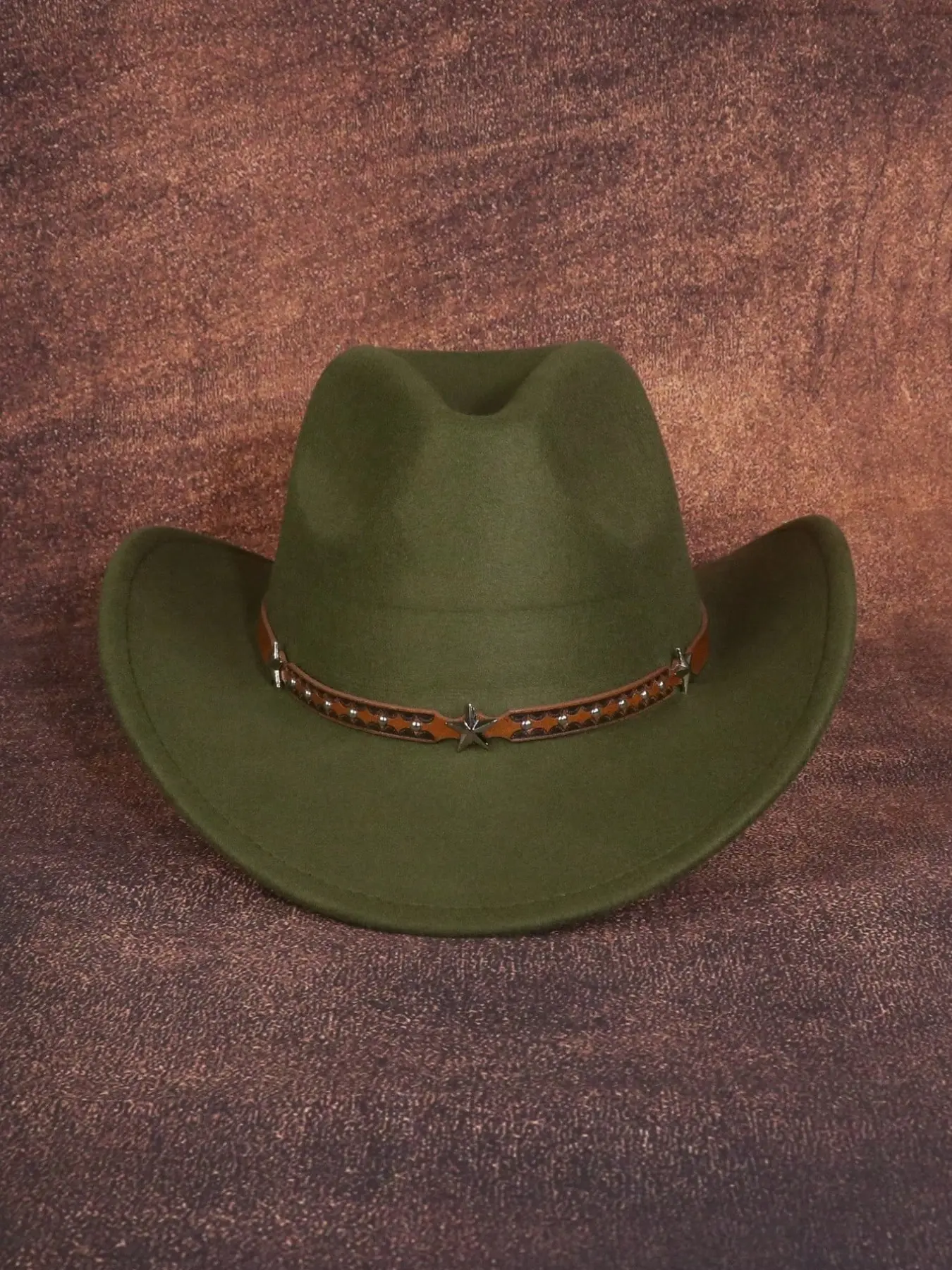【Retro Star Belt】: Features a vintage star belt, adding a unique touch to the classic cowboy hat design.