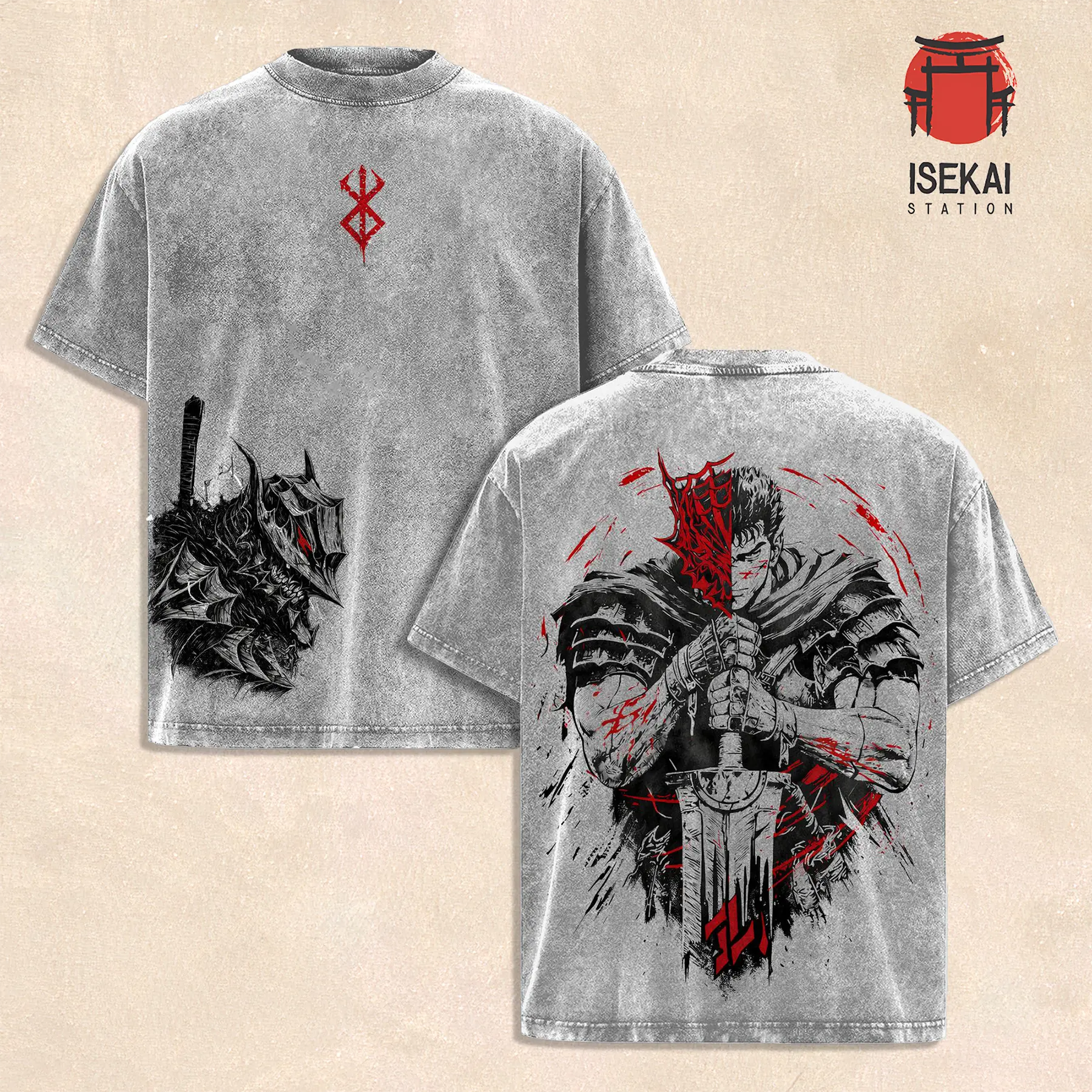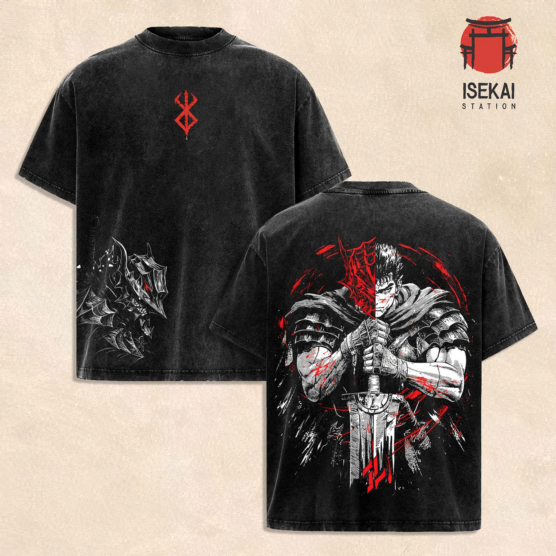 Berserk Guts Washed T-Shirt Vintage Anime Shirt, Dark Fantasy Manga Graphic Tee, Black Distressed Streetwear, Anime Oversized Shirt for Men Women, Gift for Berserk Fans