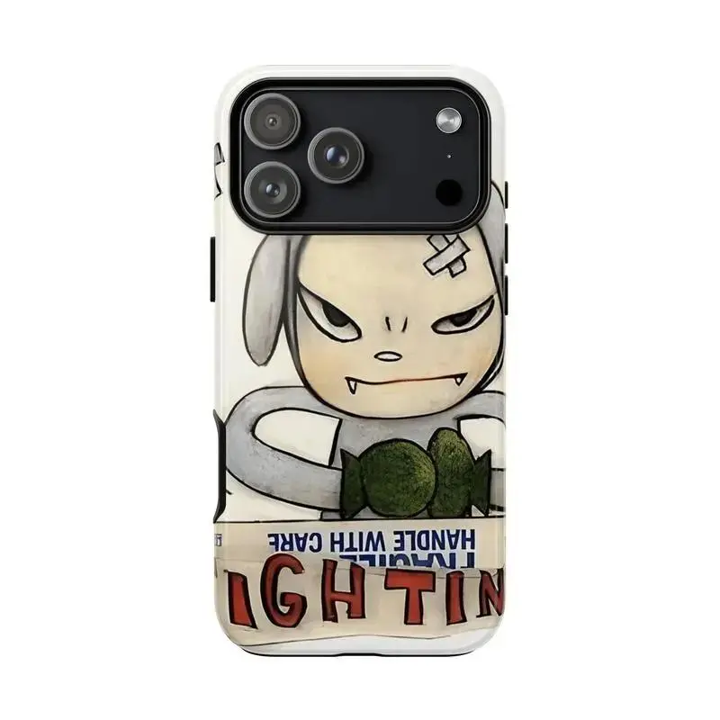 Yoshitomo Nara Inspired Tough Case, Fighting Bunny, Devil Boy, Punk Girl Bunny, Glossy Protective Cover, Accessories Protection Durable Shockproof For iPhone 17 16 15 14 13 12 11, Samsung S25 S24 S23 S22 S21 Plus Ult