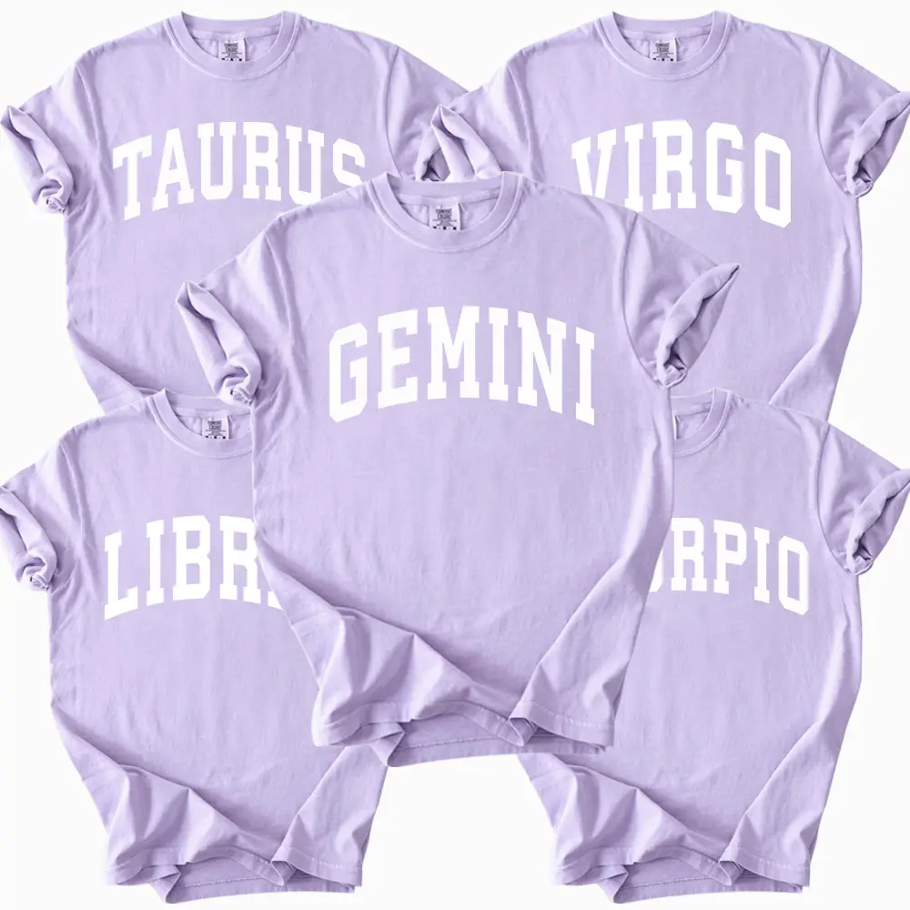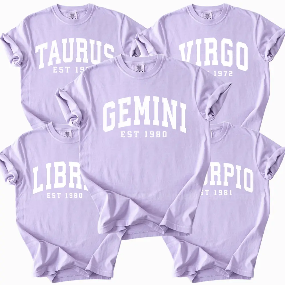 Comfort Colors Astrology Zodiac Shirt, 12 Horoscope Signs Tee, Custom Birth Year EST T-Shirt, Aries Taurus Gemini Virgo Libra Scorpio Aquarius Pisces Gift, Trendy Aesthetic Casual Wear, Orchid Color