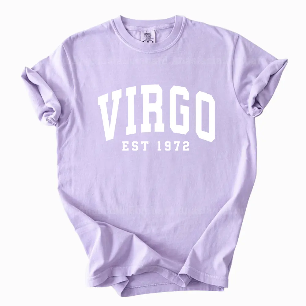 5. Comfort Colors Astrology Zodiac Shirt, 12 Horoscope Signs Tee, Custom Birth Year EST T-Shirt, Aries Taurus Gemini Virgo Libra Scorpio Aquarius Pisces Gift, Trendy Aesthetic Casual Wear, Orchid Color