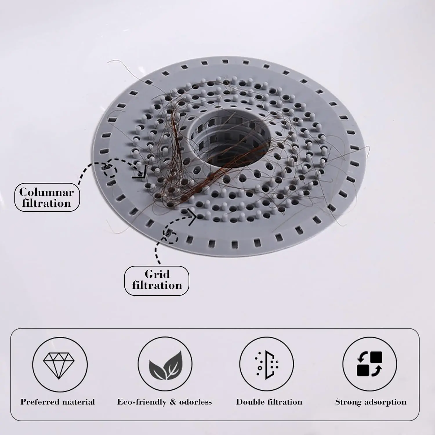 Silicone Bathtub Drain Hair Catcher – 3PCS Shower Drain Protector for 1.48" to 1.76" Regular Drains – Easy-to-Clean and Reusable Grey