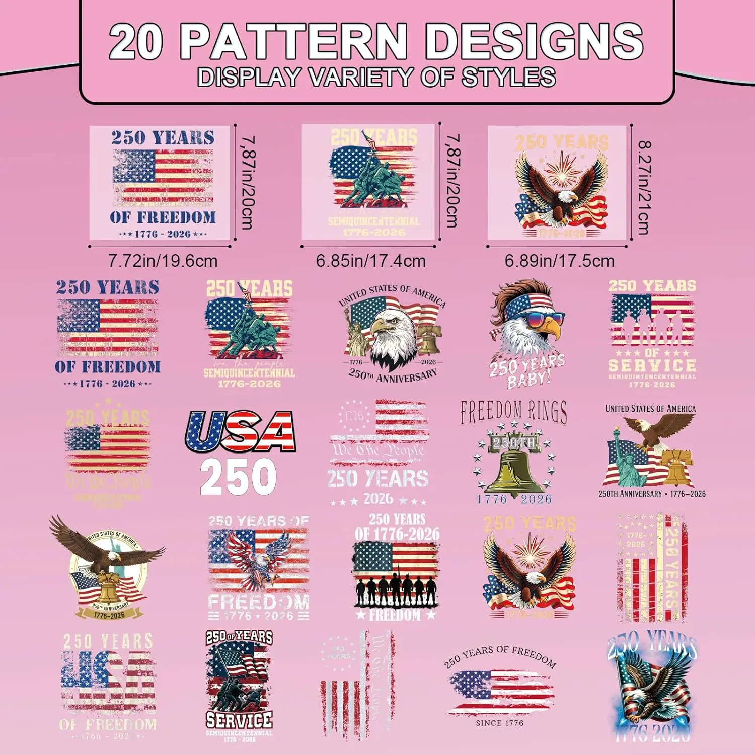 ·Ideal Gift: Make gifts with these transfers. A shirt or bag adorned with eagle and American flag design makes a memorable present for your family and friends, celebrating the 250th anniversary of the founding of the United States together
