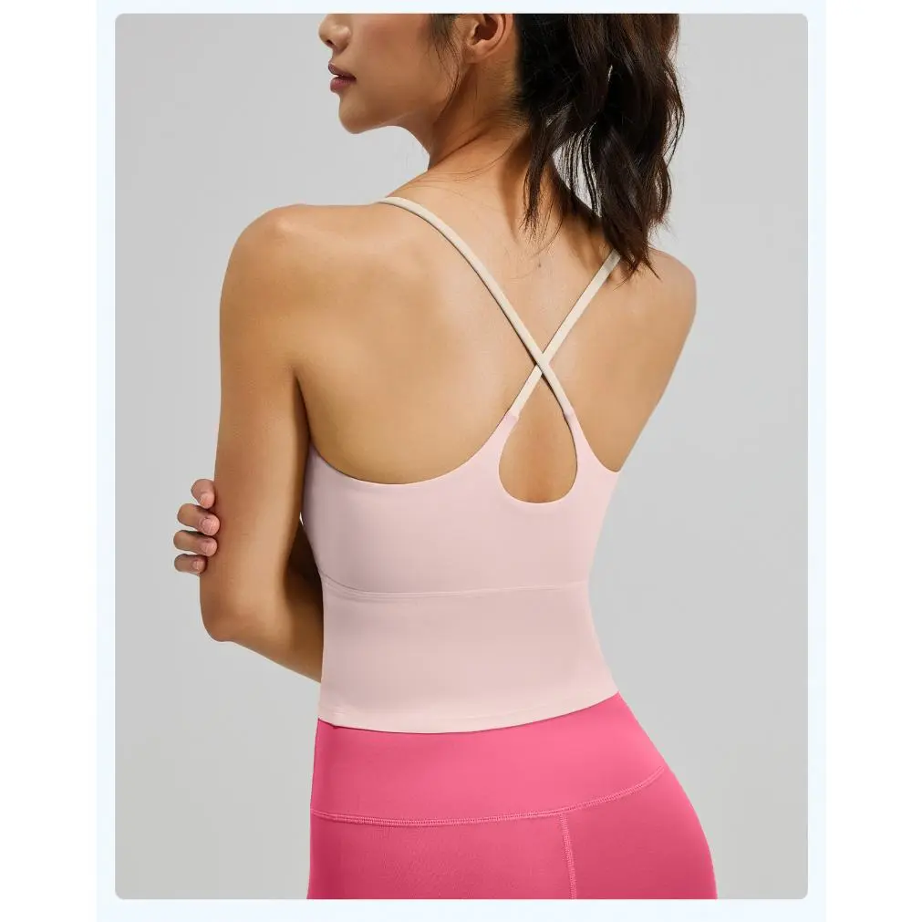 Women's High Stretch Naked Feeling Sports Beauty Back Bra, Summer Slim Fit Yoga Camisole with Chest Pad, Fitness Tank Top