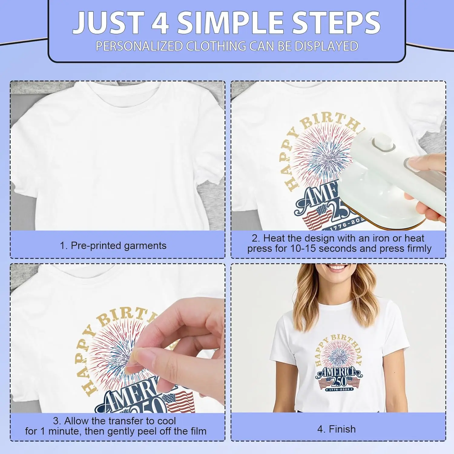 ·Meaningful Gift: This product is the nice choice for family, friends, parents, boys, girls, classmates, let's DIY your own clothes, celebrate the 250th anniversary of the founding of the United States