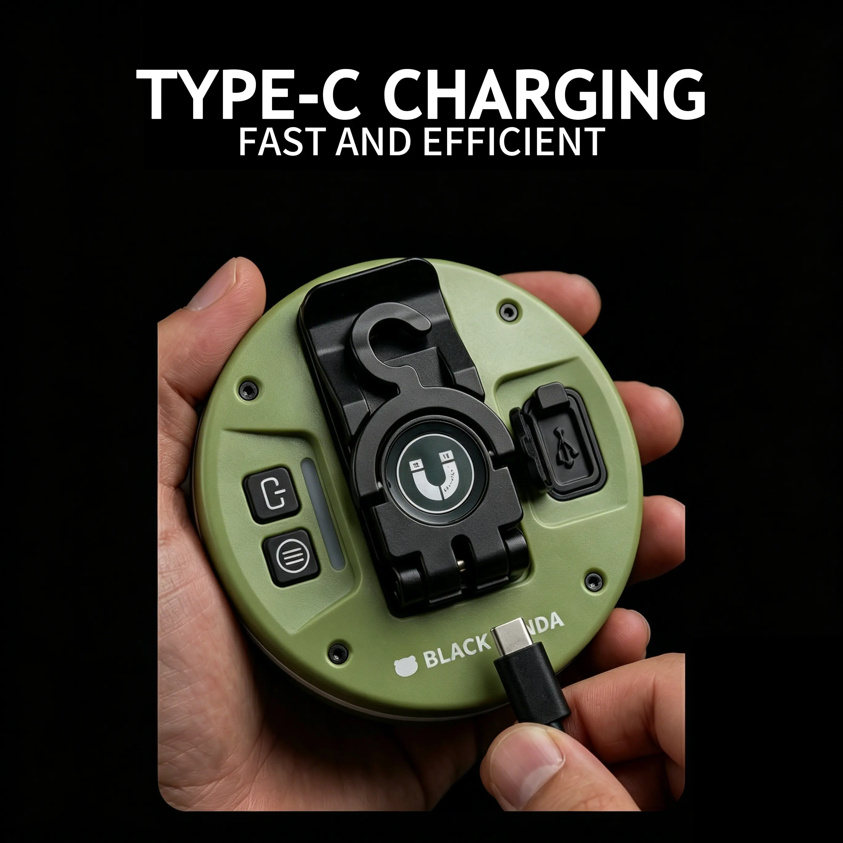 Black Panda Portable Flashlight with Hook Built-in Tail Hanger COB Side Light Max 500 Lumens TYPE-C Quick Charge Perfect Companion for Hiking and Camping