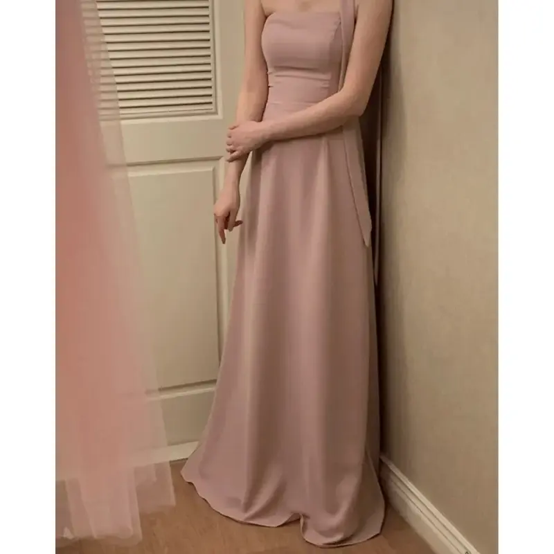 Black Strapless Korean Minimalist Evening Dress – High-End Banquet Gown, Slimming Forest Light Wedding Dress for Women, Birthday Ceremony