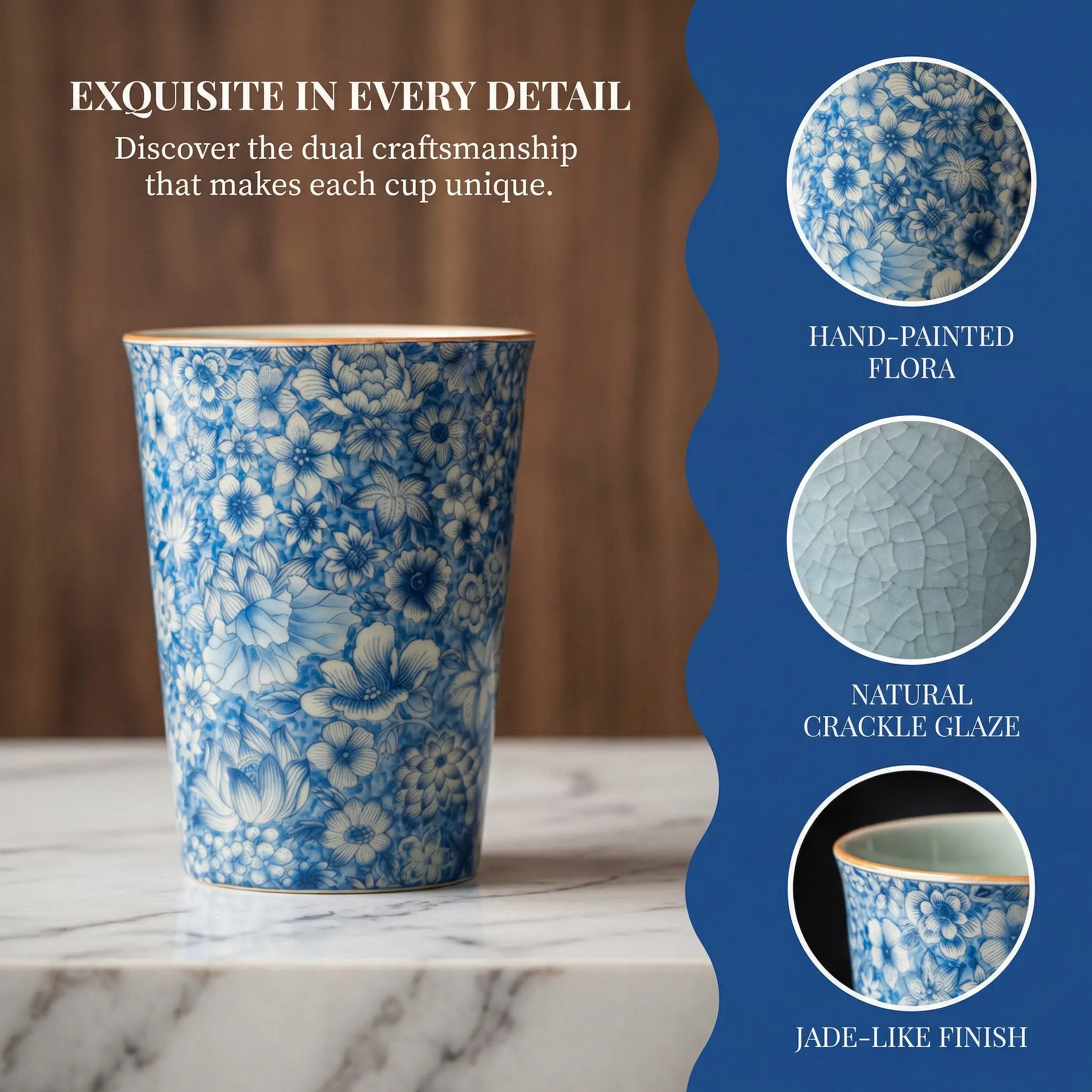 Viral Blue And White Floral Ceramic Teacup | Traditional Chinese Handcrafted Tea Lover Gift