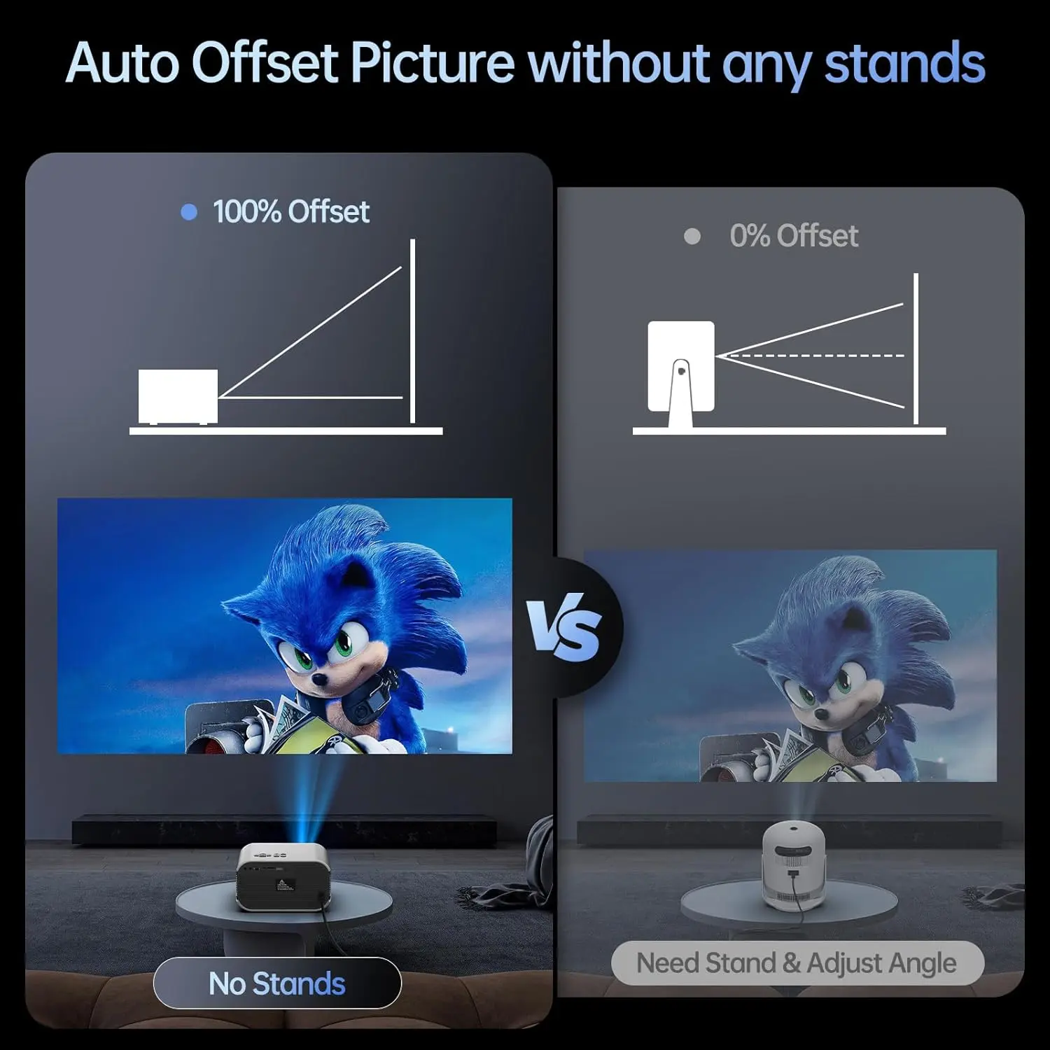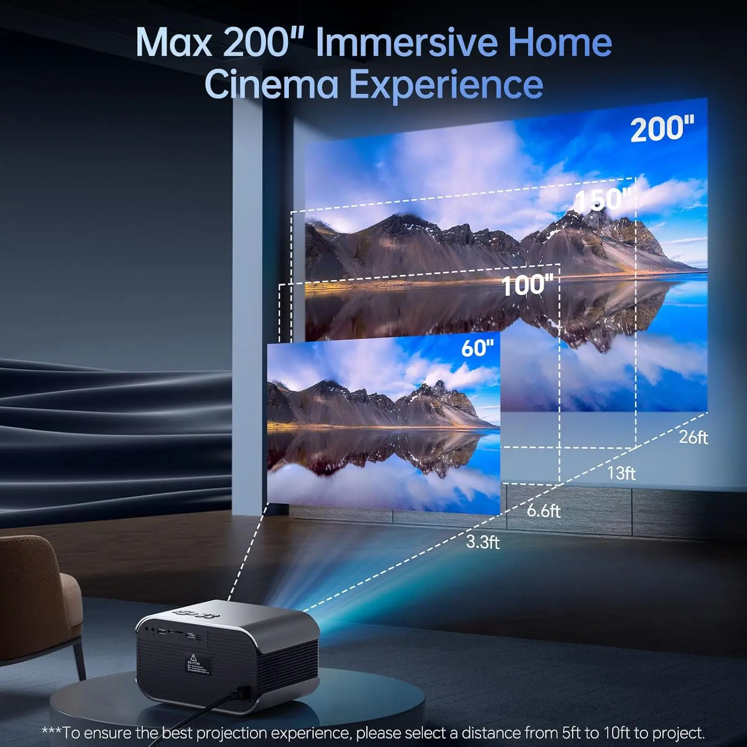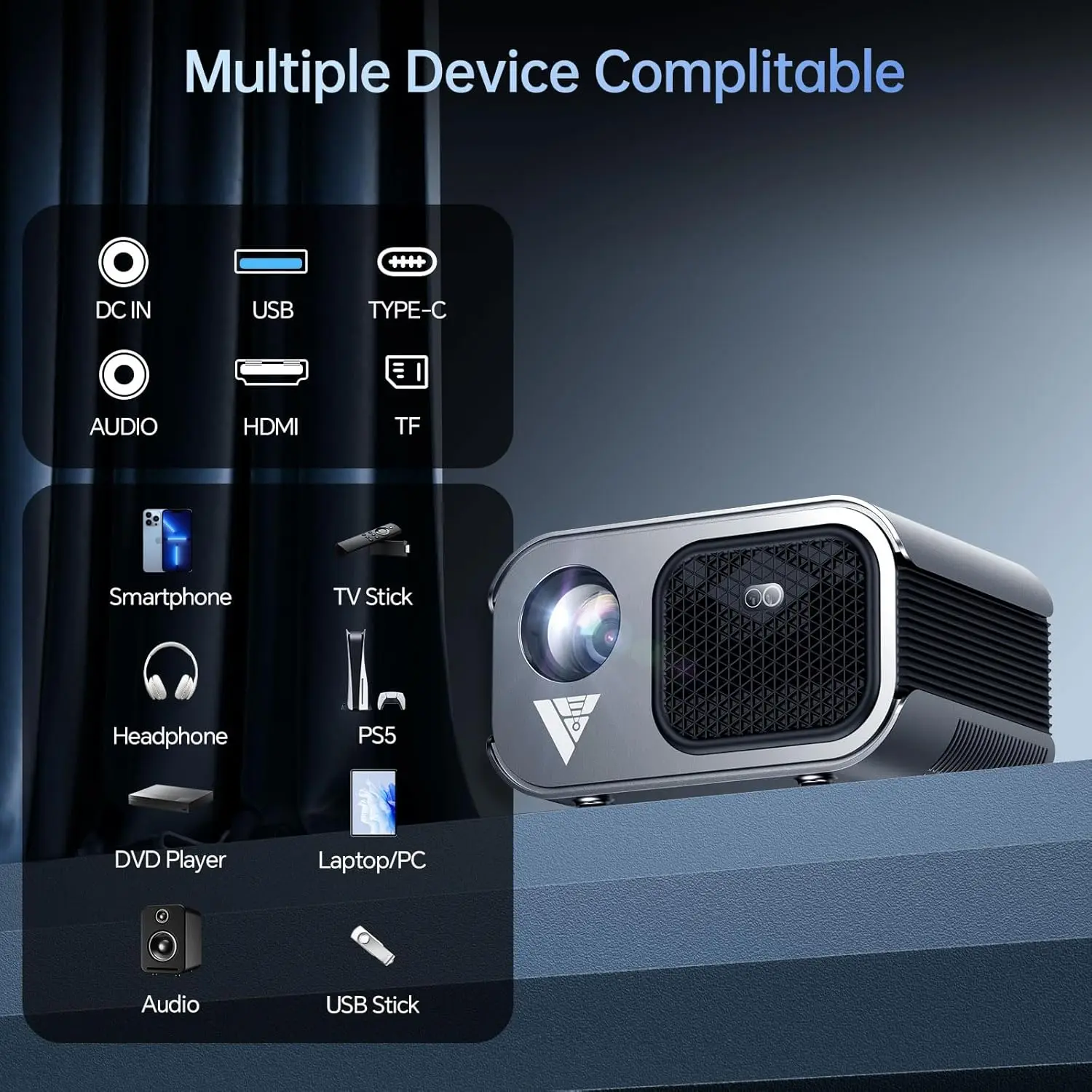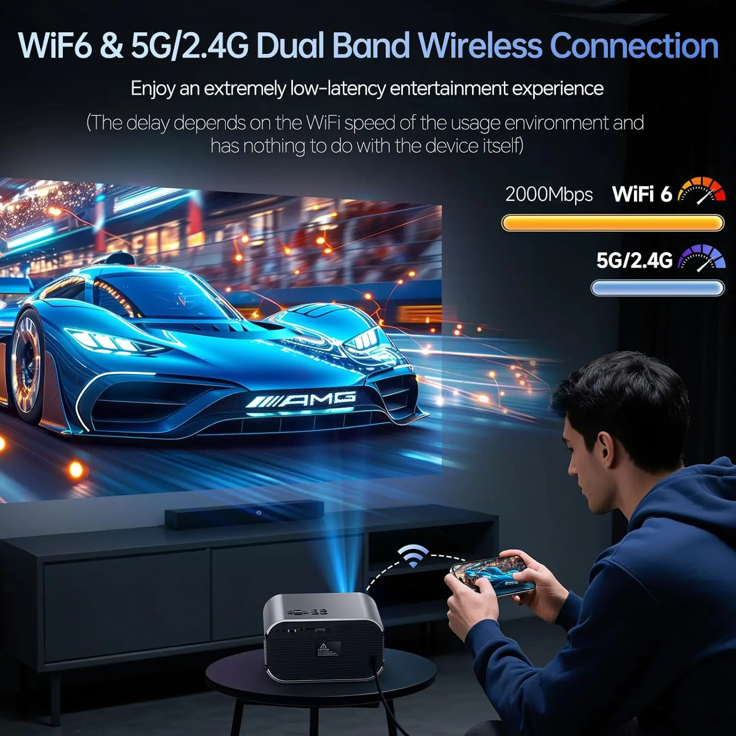 Mini Projector with WiFi and Bluetooth 4K Support, Native 1080P Portable Outdoor Smart Projector, Mirror Screen with Android/iOS/PC Compatible with PC/PS5/Phone/TV Stick (VF340)