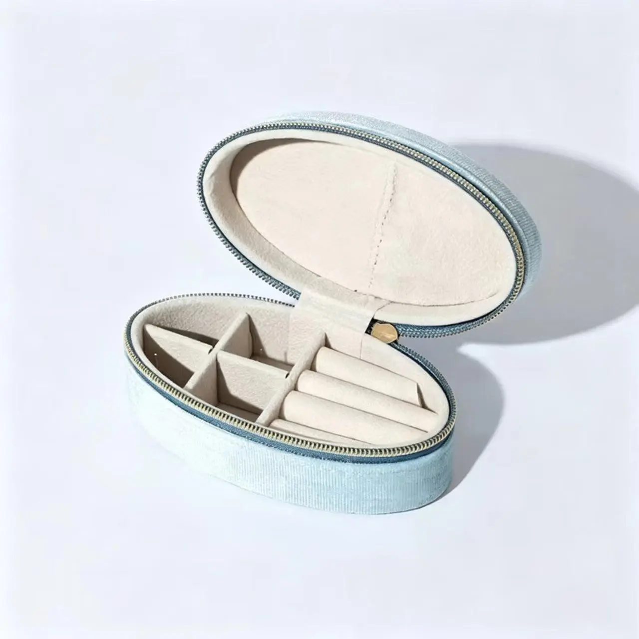 Elegant Oval Mini Jewelry Box, Multi-Functional Portable Earring Necklace Organizer, Compact Storage Solution for Accessories