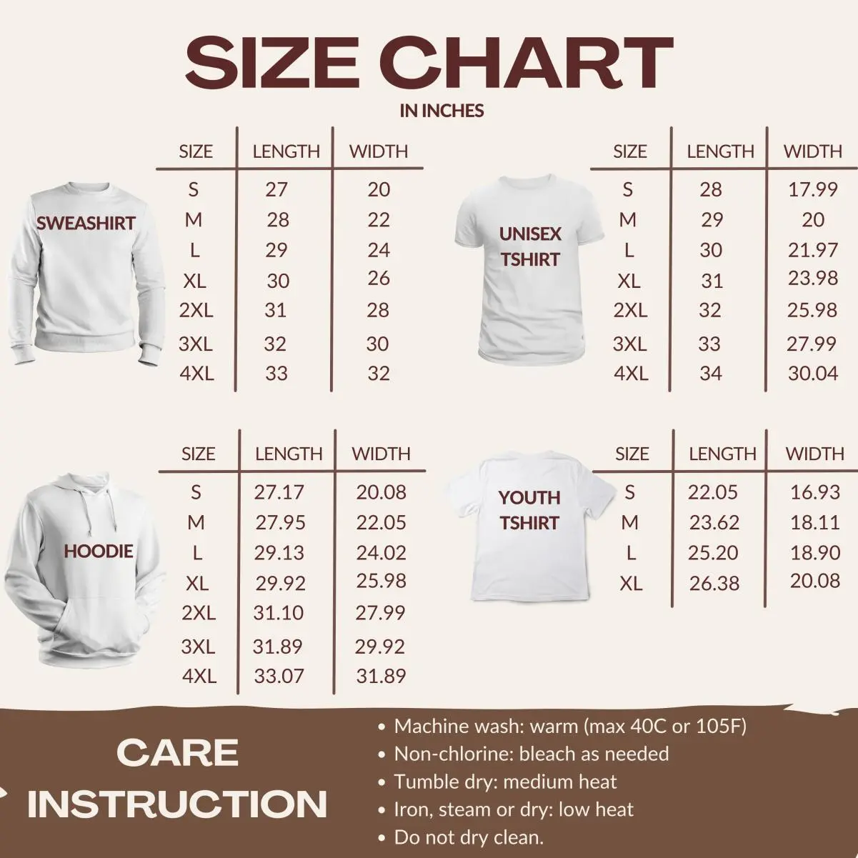 ·No Bleaching: Do not bleach, dry clean, or iron directly on the design.