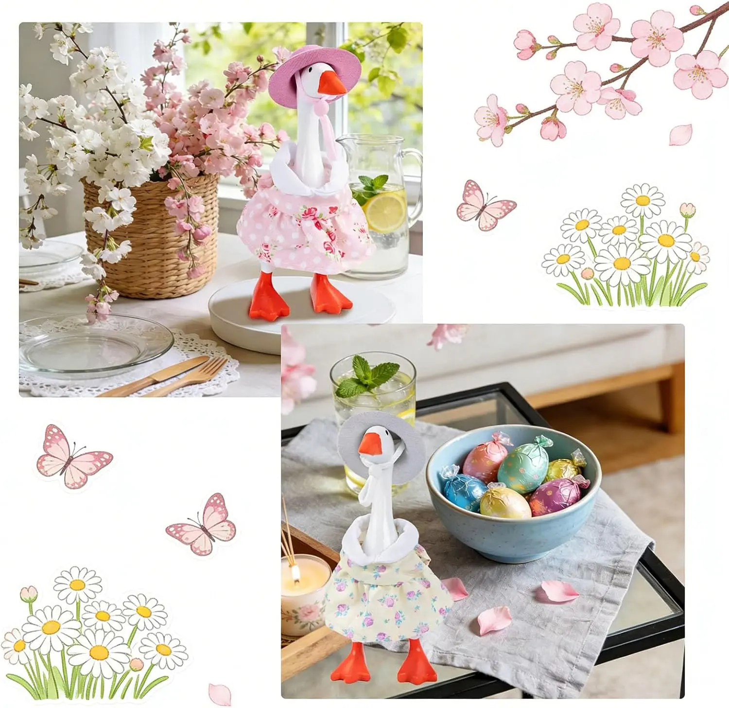 【New Outfits for Your Desktop Goose】 Infuse your workspace with the vibrant energy of spring using these four sets of desktop goose outfits, featuring colors and patterns that beautifully complement one another. The diverse color schemes and floral motifs allow you to easily rotate looks, creating a desktop display atmosphere that is soft, cheerful, and perfectly balanced.