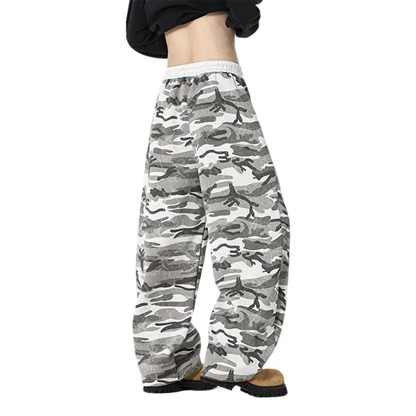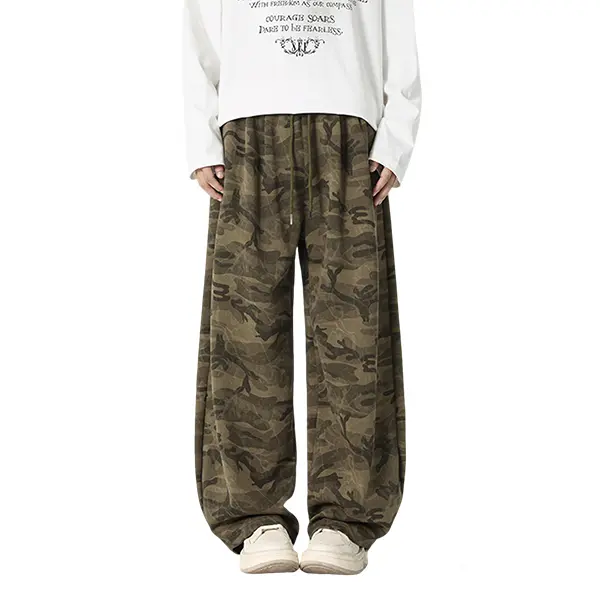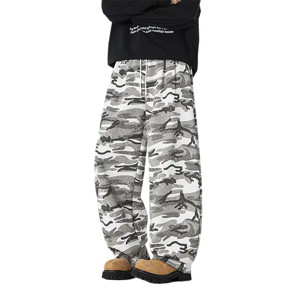 Men's Camouflage Wide Leg Drawstring Pants, Casual Baggy Cargo Trousers, Perfect for Street, Skate, Daily & Streetwear