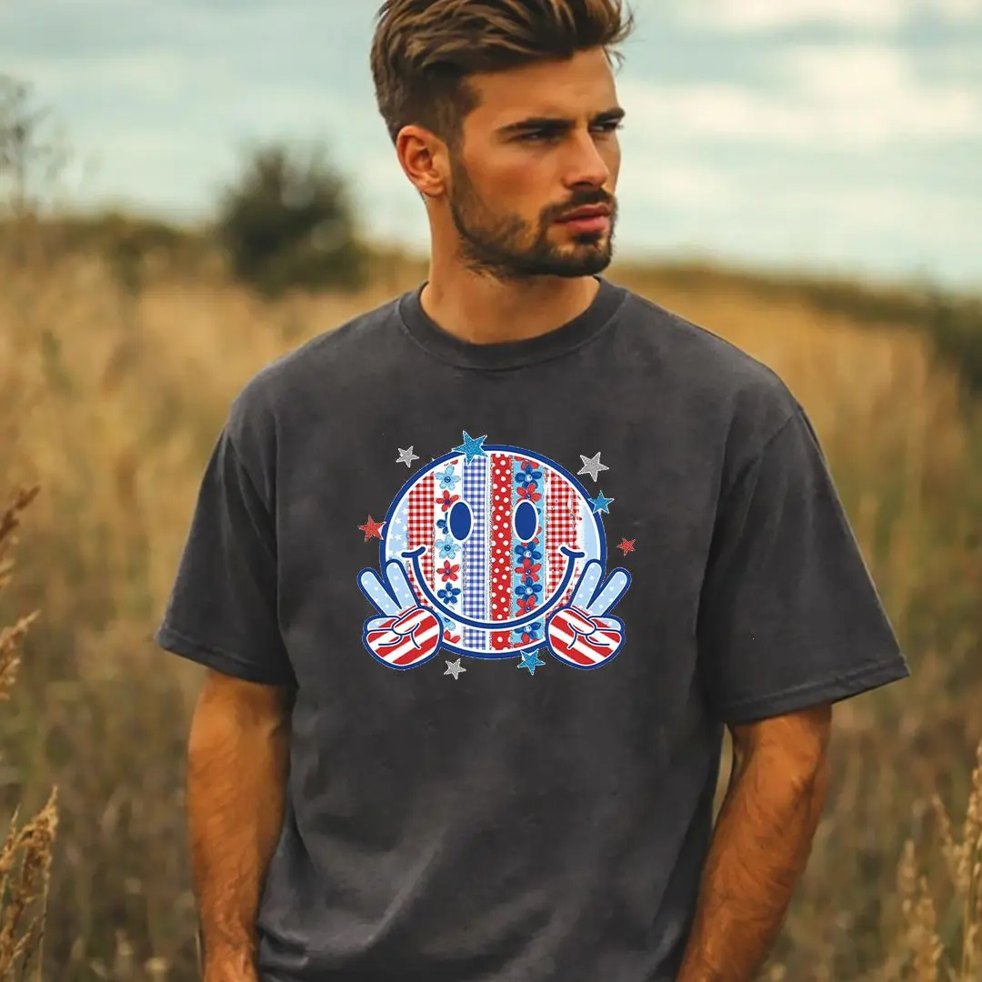 4th of July Smiley Face Shirt, Floral Patriotic Graphic, Independence Day Peace Sign, Memorial Day Stars and Stripes, Comfort Colors T-Shirt.
