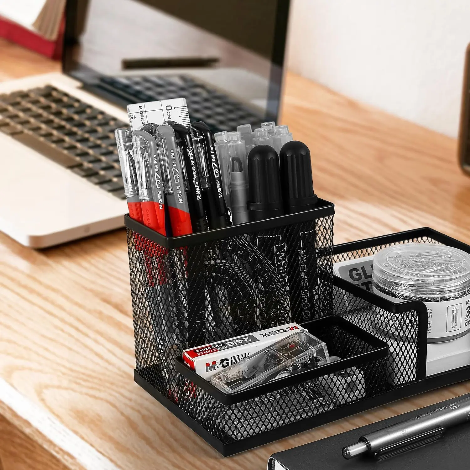 ·Three Compartments for Essentials: This M&G mesh pen holder keeps your workspace tidy. It features three separate compartments for pens, pencils, scissors, and more. Perfect for maintaining order in your office, school, or home.