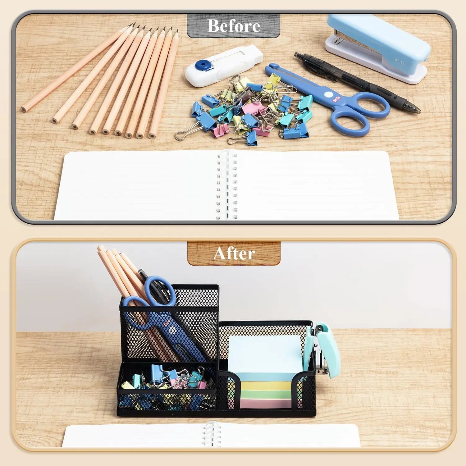 ·Versatile Use: Perfect for offices, classrooms, or home desks. Keep stationery and supplies orderly and accessible. This durable metal desk organizer is a must-have for any workspace.