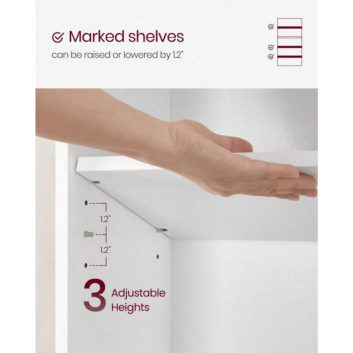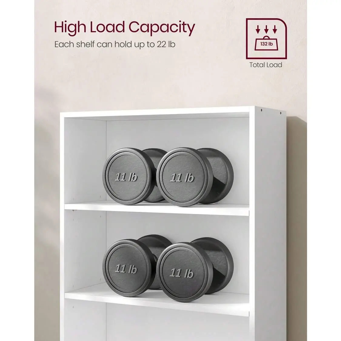 🔧 The first and third shelves adjust to 3 height positions, accommodating various items. The included anti-tip kit secures the bookshelf to the wall, minimizing risks. It holds up to 132 lb (60 kg) in total, with a max of 22 lb (10 kg) per shelf. Assembly is straightforward with a detailed manual and labeled parts.
