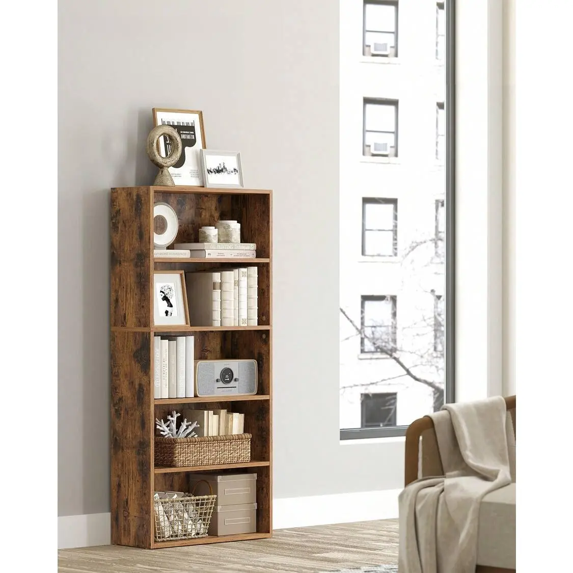 5-Tier Open Bookshelf, Adjustable Storage Shelves Floor Standing Bookcase, 9.4"D X 23.6"W X 52.7"H, Space-Saving Organizer for Home, Office, Living Room, Bedroom, Home Decor