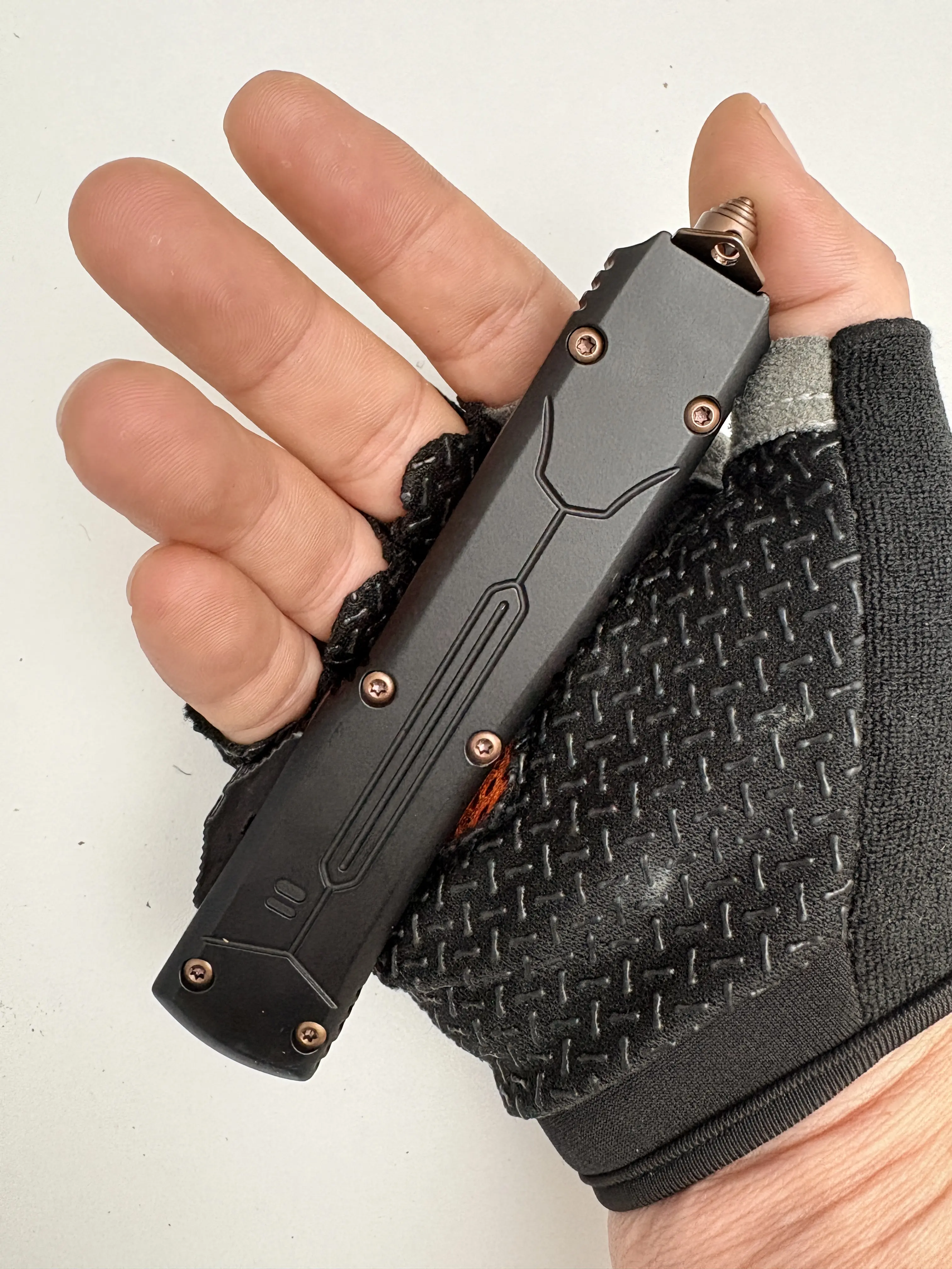 This is one of the coolest knives I've purchased yet. Smooth action. Wide blade, looks amazing. Great weight to it. Not in love with the way you unlock it. Bought 3 more as gifts.