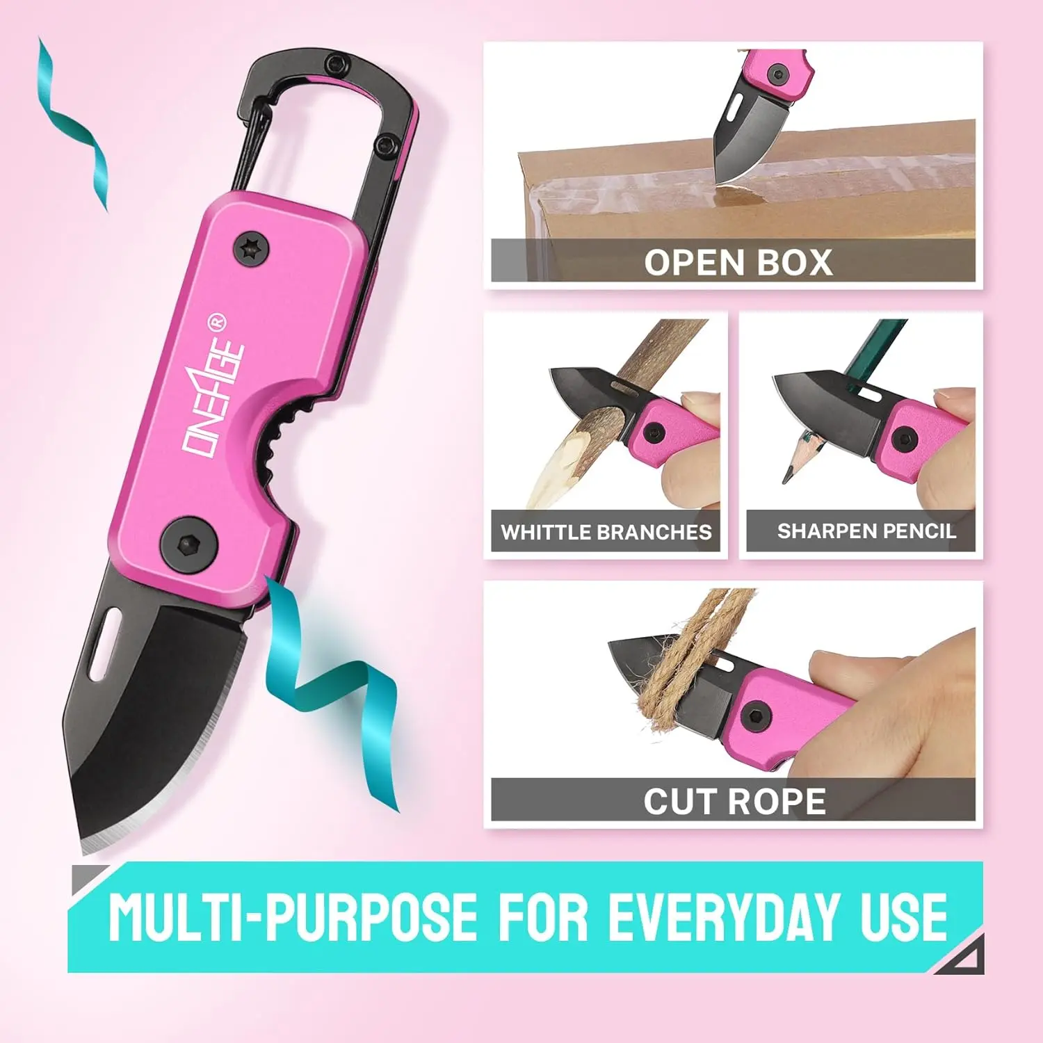 Pink Pocket Knife for Women - Stocking Stuffers for Christmas, Mothers Day Gifts, Keychain Edc with 1.62inch Blade - Small Folding Knives for Everyday Carry, Box Cutter - Gadgets for Camping Hiking