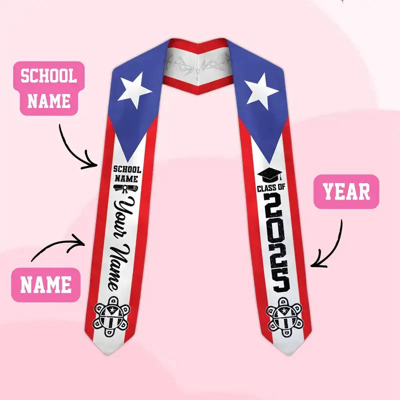 Customized Puerto Ricans Flag Graduation Sash 2026, Puerto Rico Graduation Gift Stole