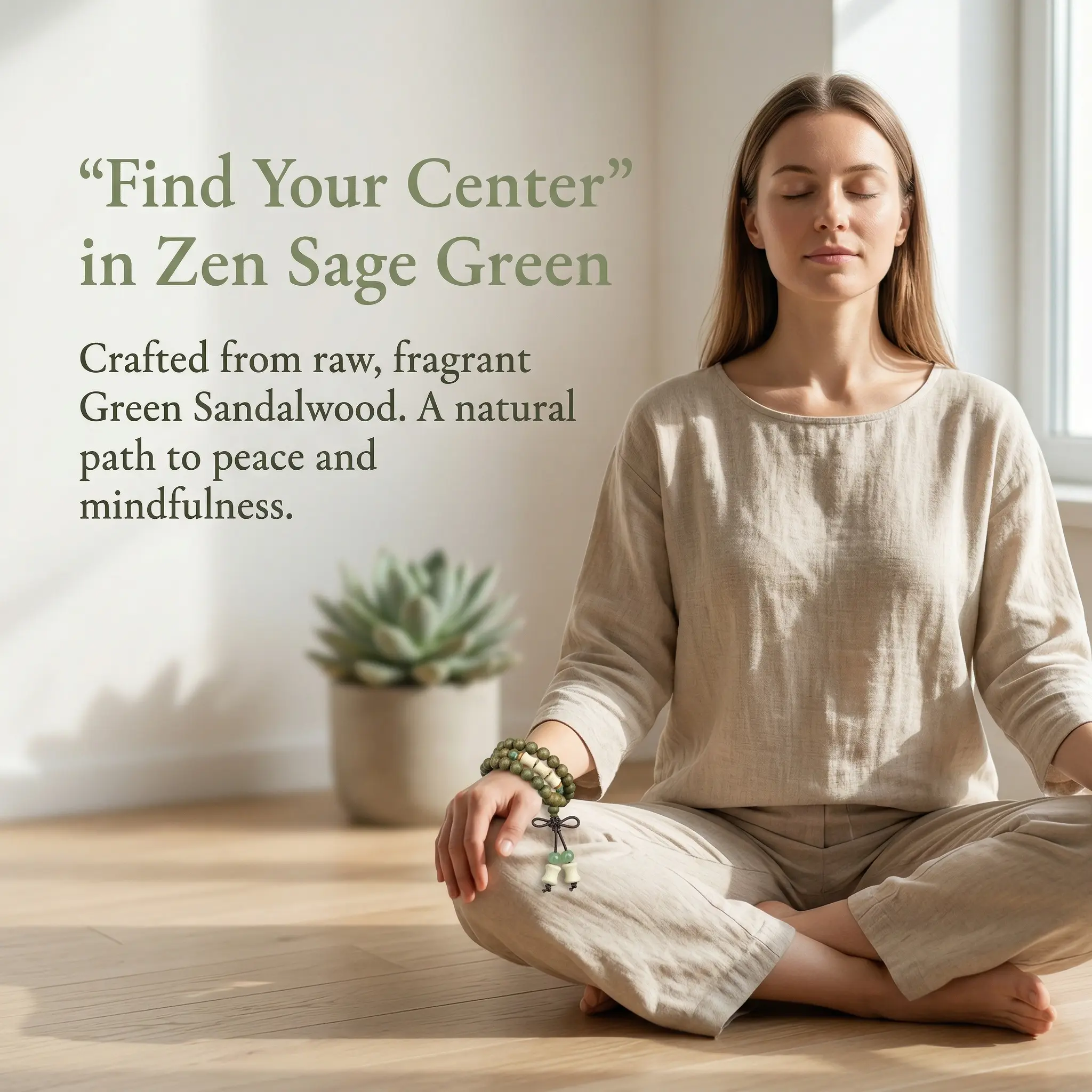 ·Sandalwood Material: Known for its calming properties.