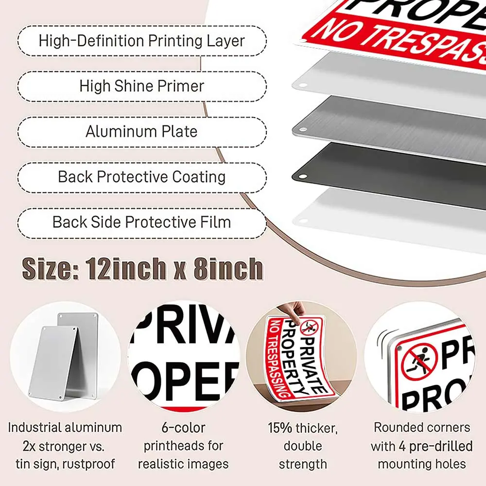 TikTok Viral! Private Property No Trespassing Metal Sign - 12x8 Inch Aluminum