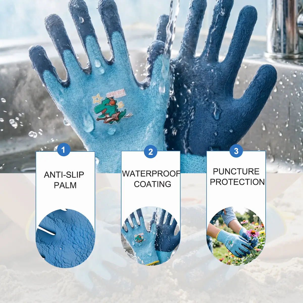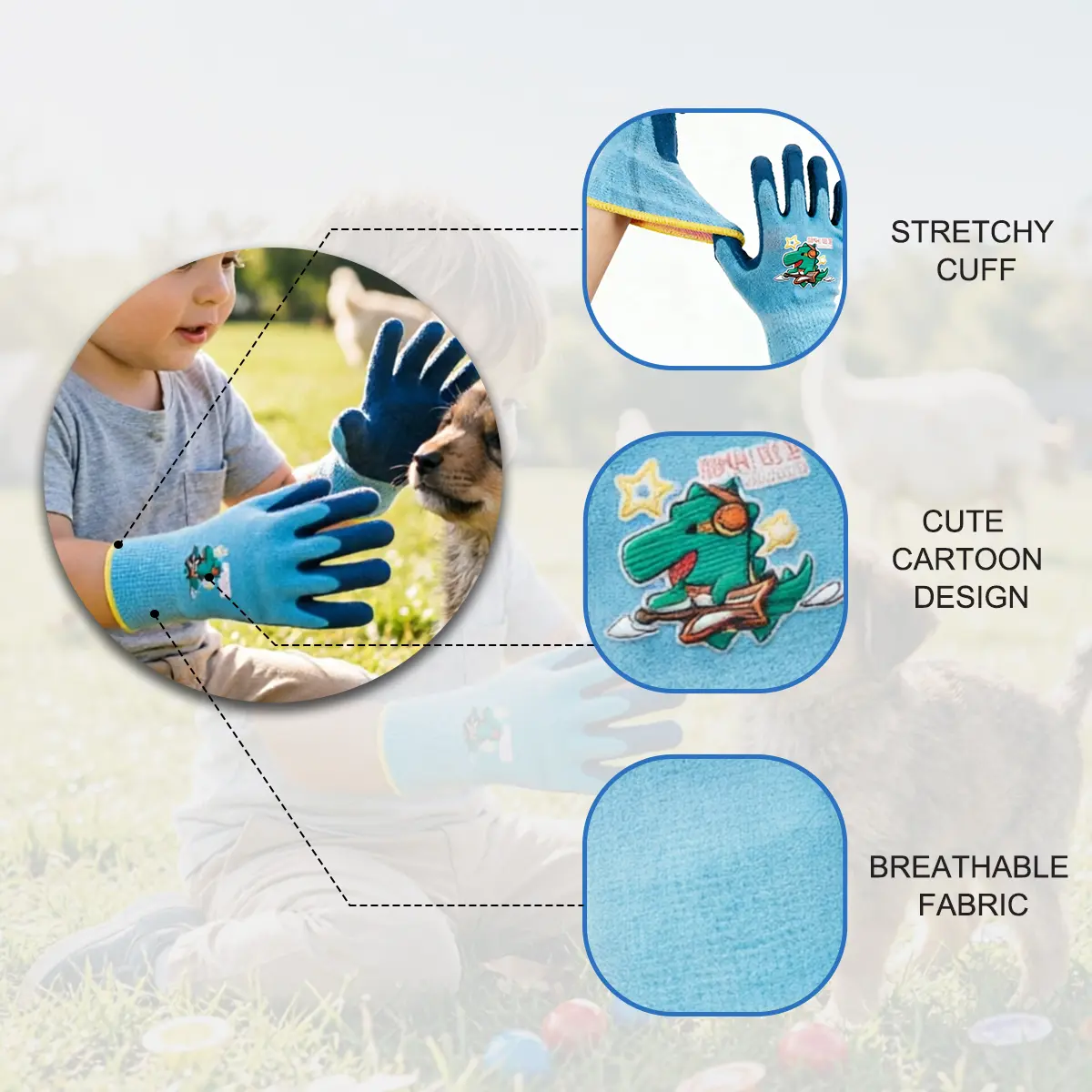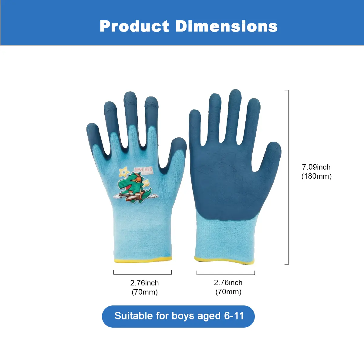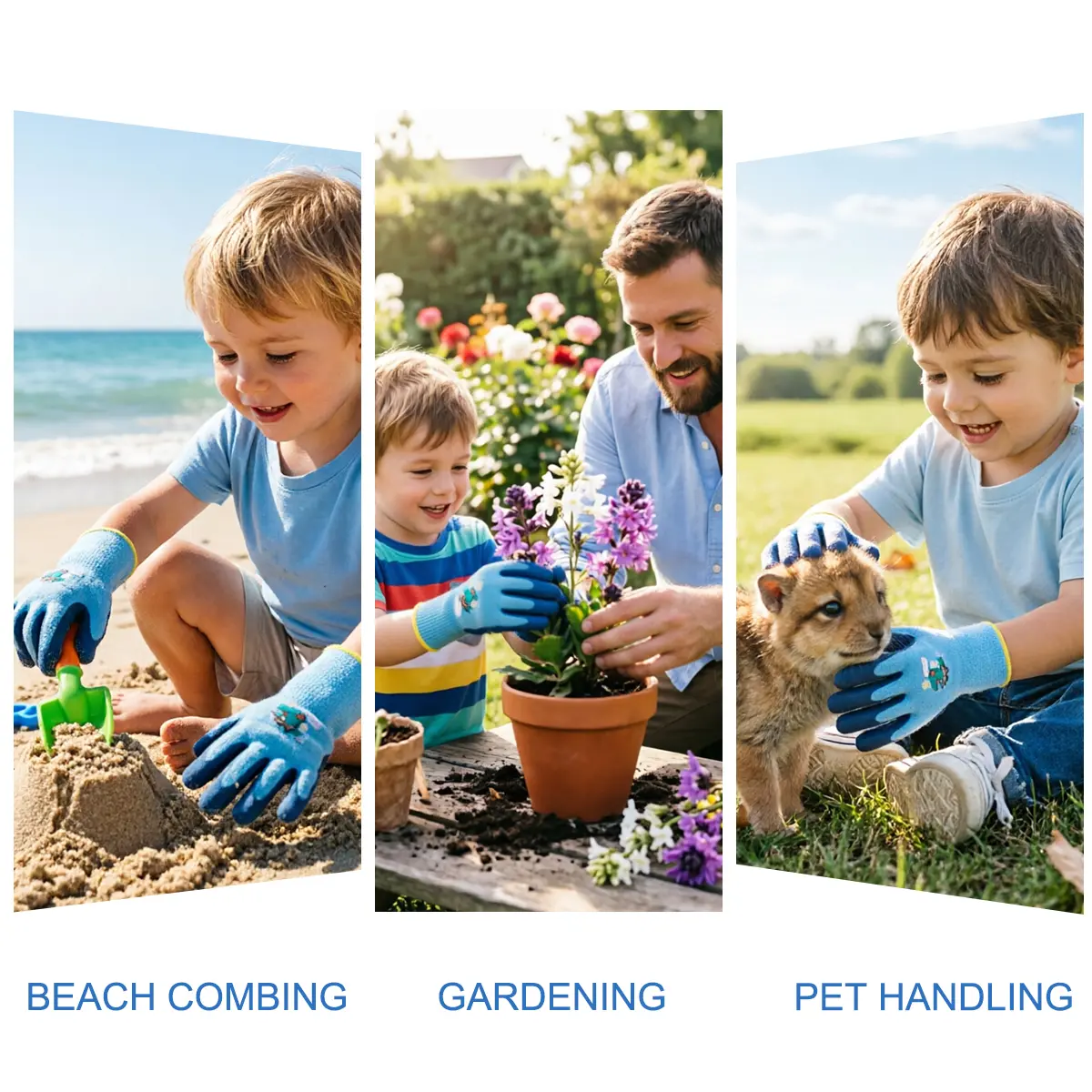 3Pairs Kids Protective Work Gloves for Boys Age 5-12 | Light Blue Anti-Slip Grip | Perfect for Beach, Gardening & Pet Handling