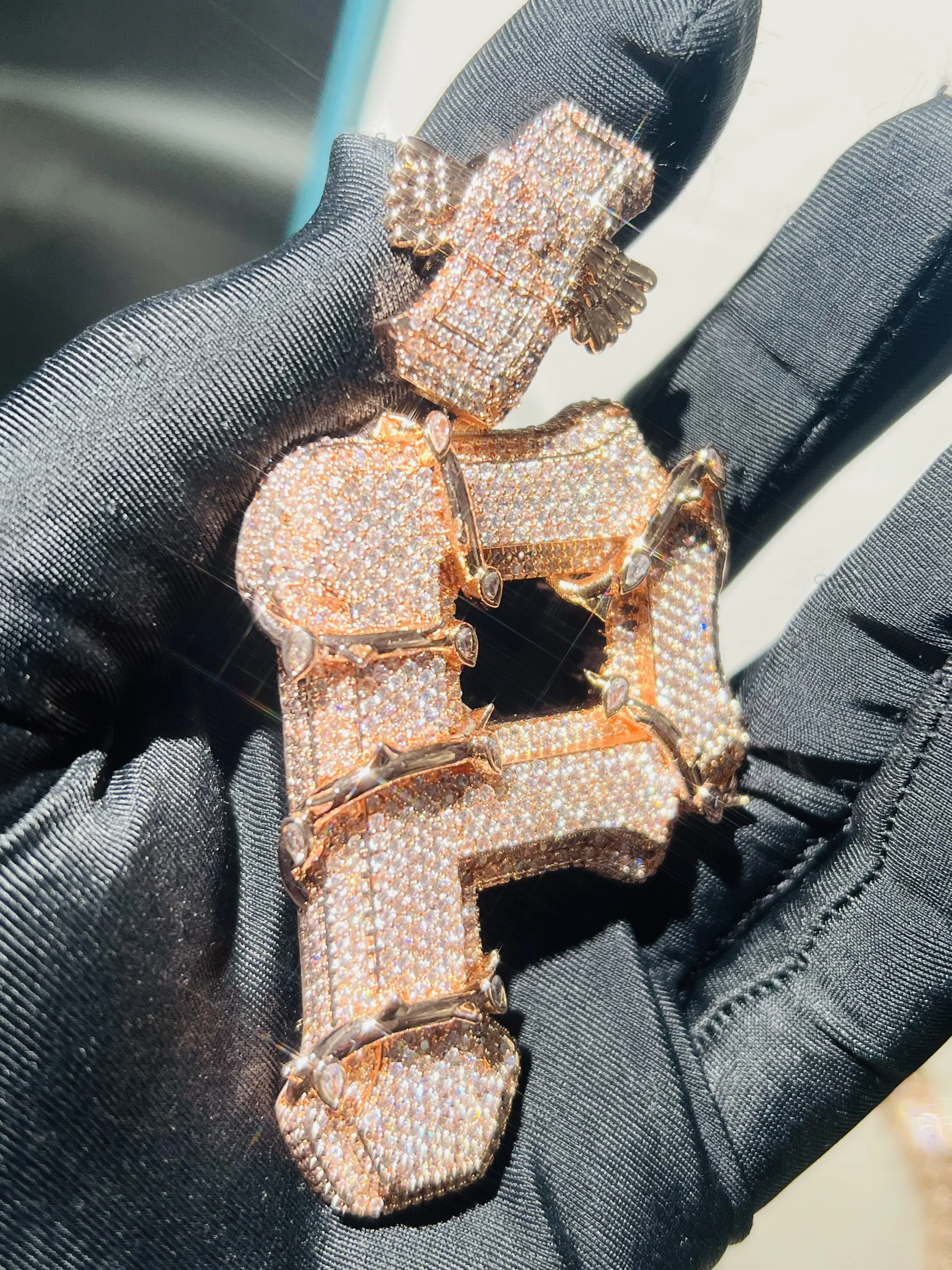 Luxury letter P pendant hip-hop jewelry iced diamond pendant VVS custom long stick iced diamond luxury high-end dynamic initial pendant fashion trendy high-end style pendant