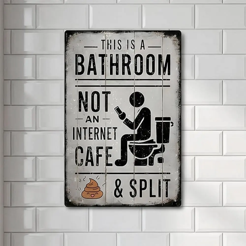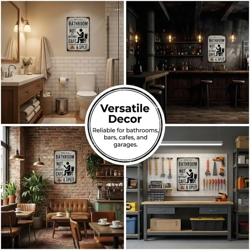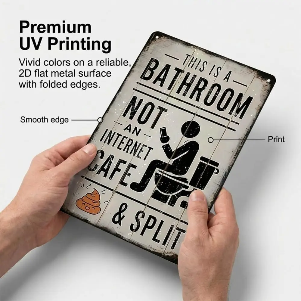 We've all been there. You knock on the bathroom door. Someone is inside. And they've been there for a while. Chances are, they're scrolling through their phone. This vintage metal tin sign offers a lighthearted way to remind family and guests that bathrooms have a primary purpose – and it's not endless scrolling.