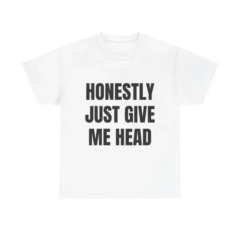 HONESTLY JUST GIVE ME HEAD TEE - Out-of-Pocket Funny T-Shirt Unfiltered Horny Humor Tee Wild Viral Internet Shirt Unisex Raunchy Graphic Tee for Degenerates Soft Cotton Streetwear Chaos Talk Dirty, Gift for Woman and Man