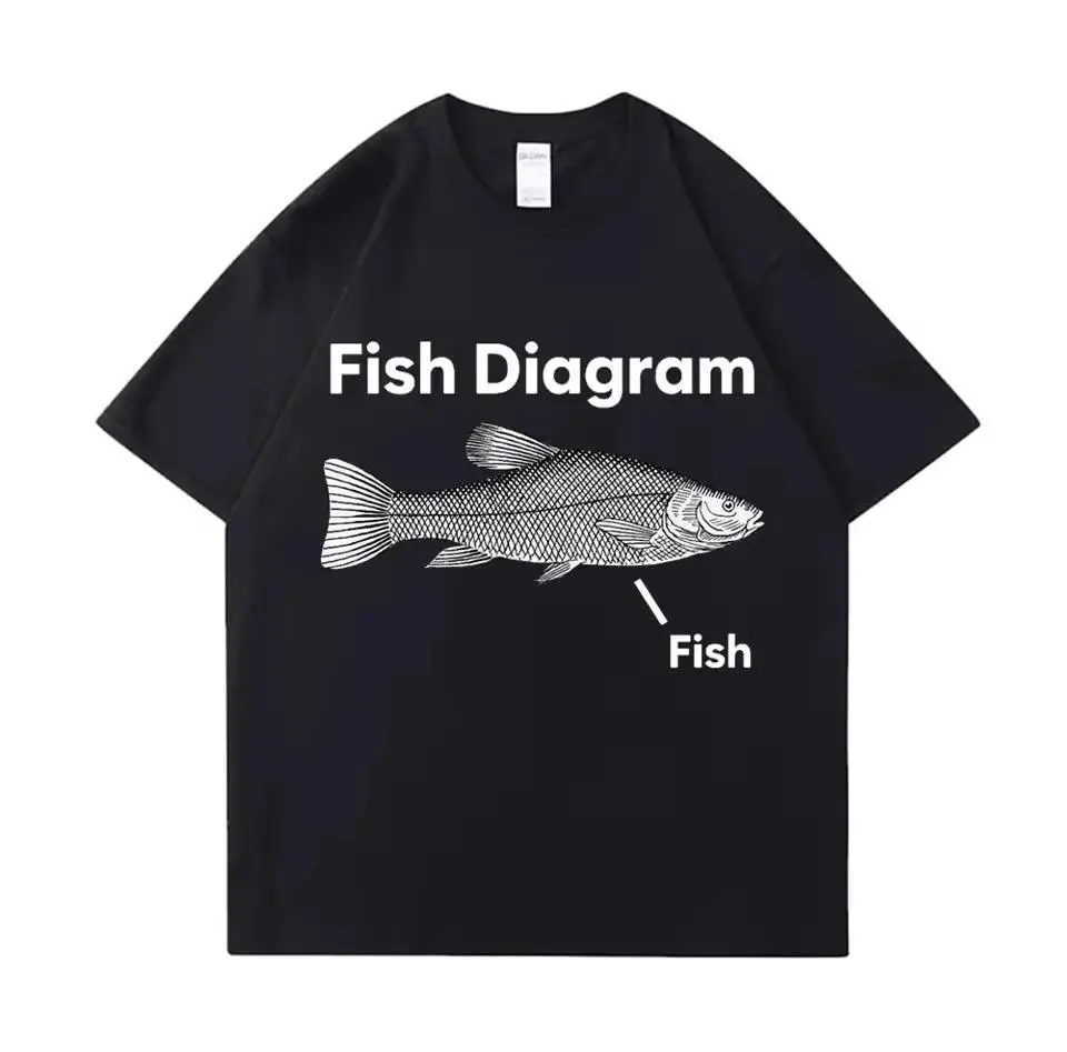 Tees Meme T Shirt Unisex Man Eat Fish Day Teach Fish Man To Lifetime Funny Casual Cotton T-shirt Men Women