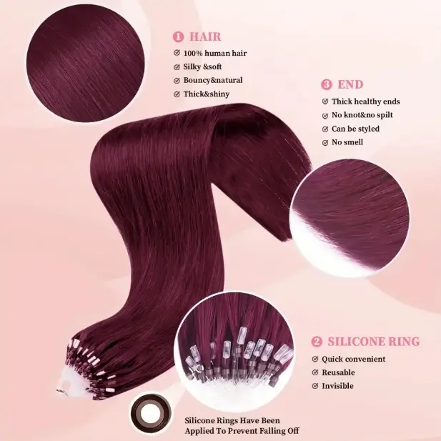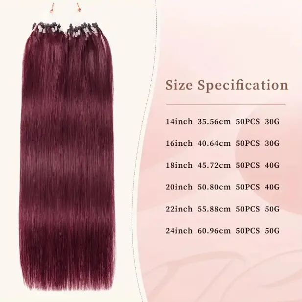 "Micro Loop Human Hair Extensions for Women & Girls, 12-28 Inch 30G 50 Strands, Red Blonde Silky Soft, Undetectable & Comfortable, No Tangle No Shedding for Glamorous Natural Looks "