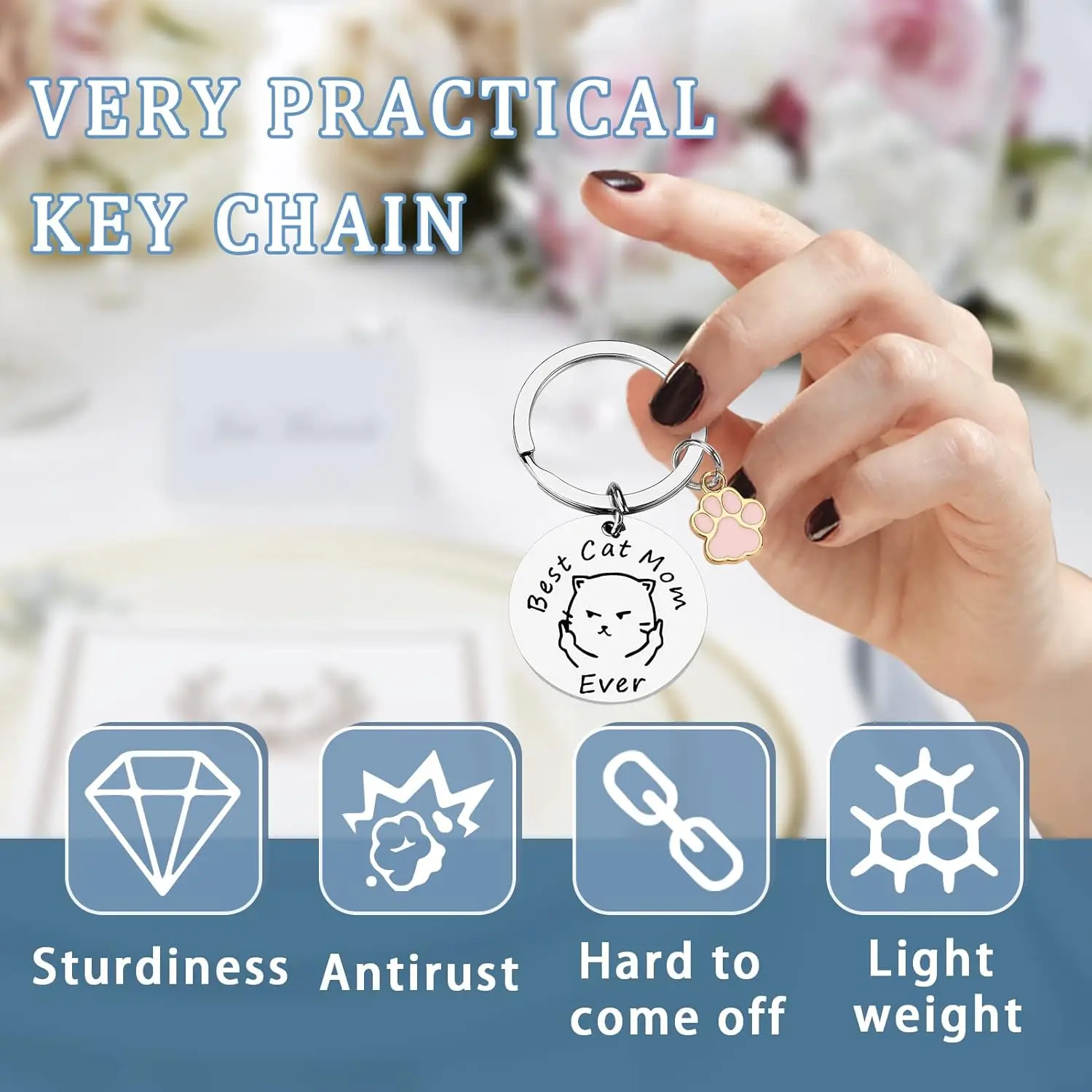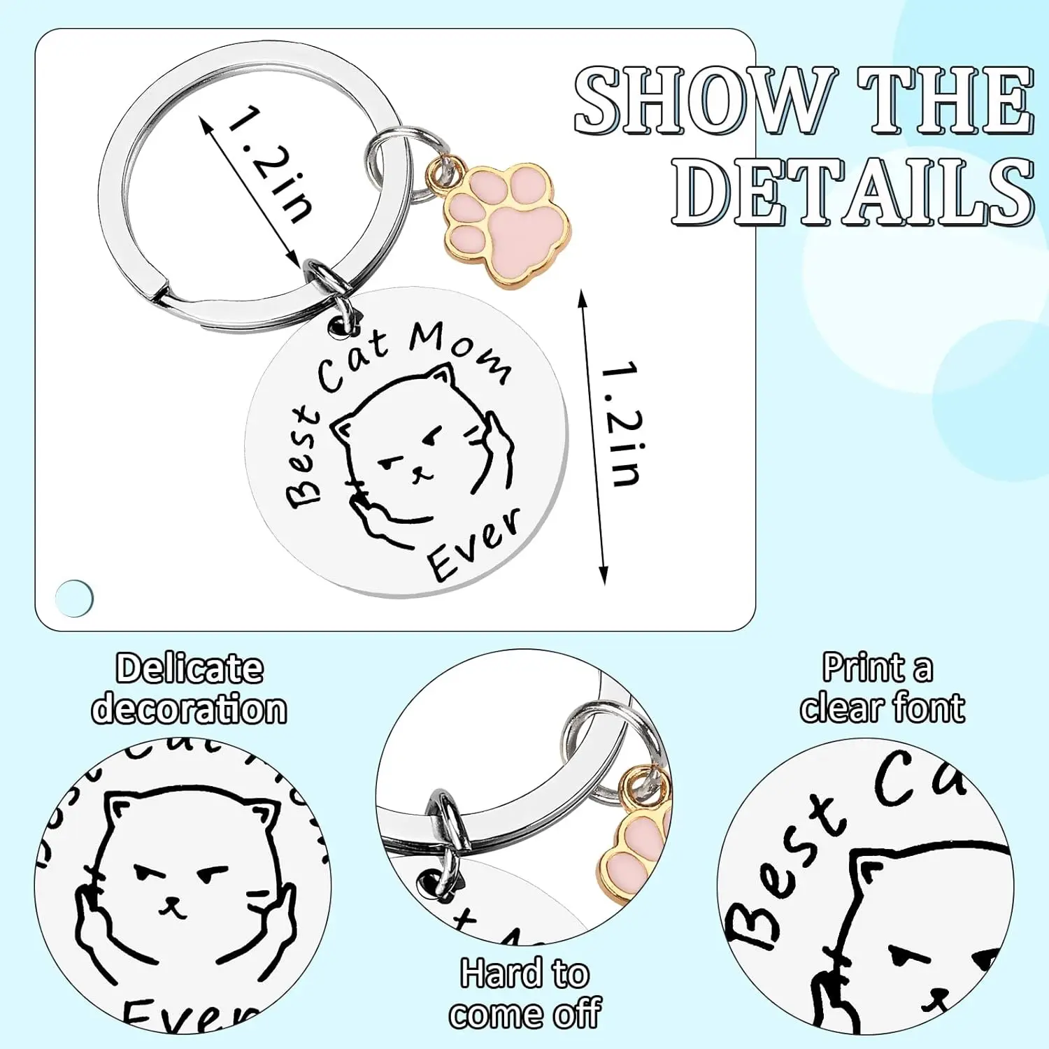 Superior Quality:Hypoallergenic stainless steel, these materials, lead-free and nickel free. This keychain keeps a lasting luster and is not easy to rust,Christmas stocking stuffers for cat lover,gift for her who loves cat,Mother's Day gift for mom
