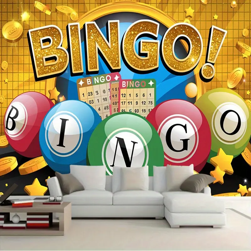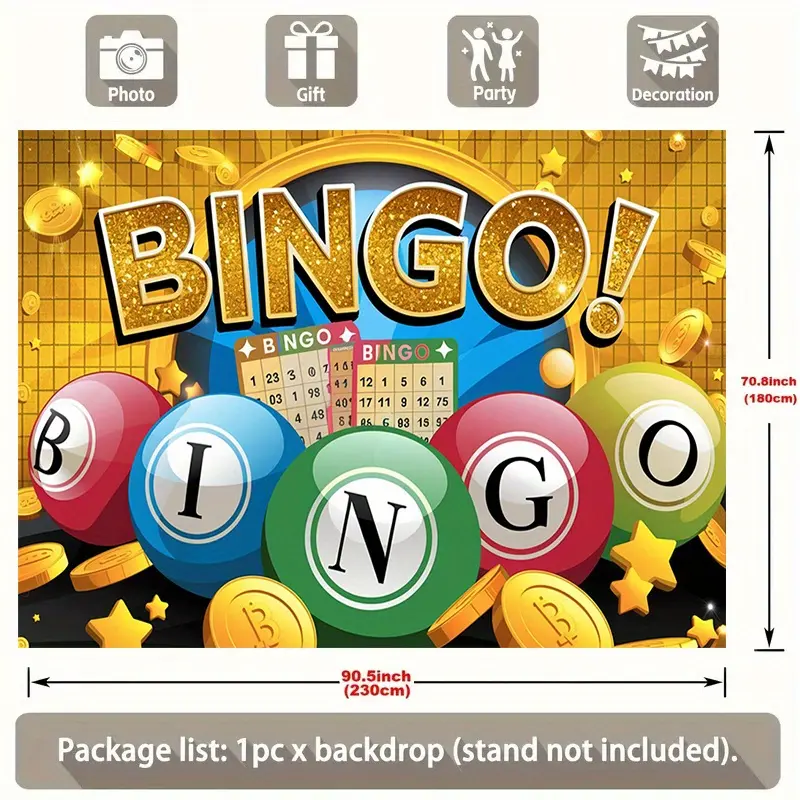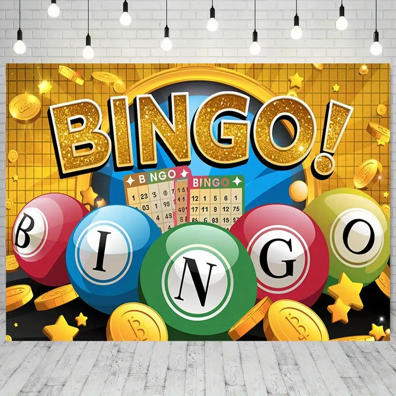 Bingo Night Tapestry Casino Game Backdrop Gold Theme Wall Hanging Photography Background Cards Coins Design for Party Decoration Indoor Outdoor Event Decor Polyester
