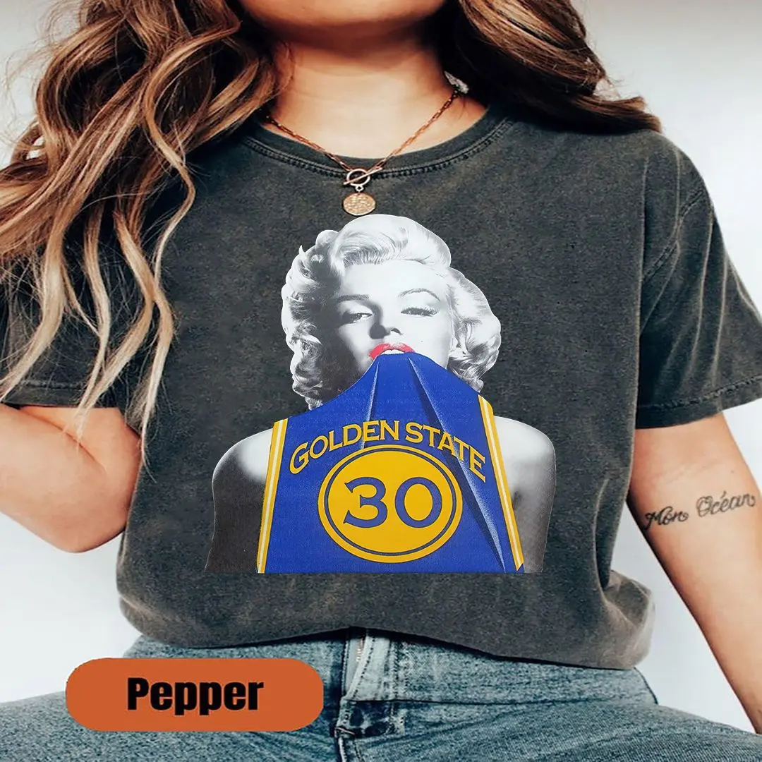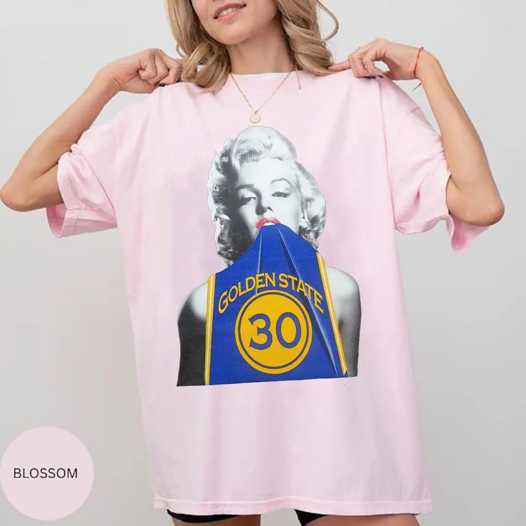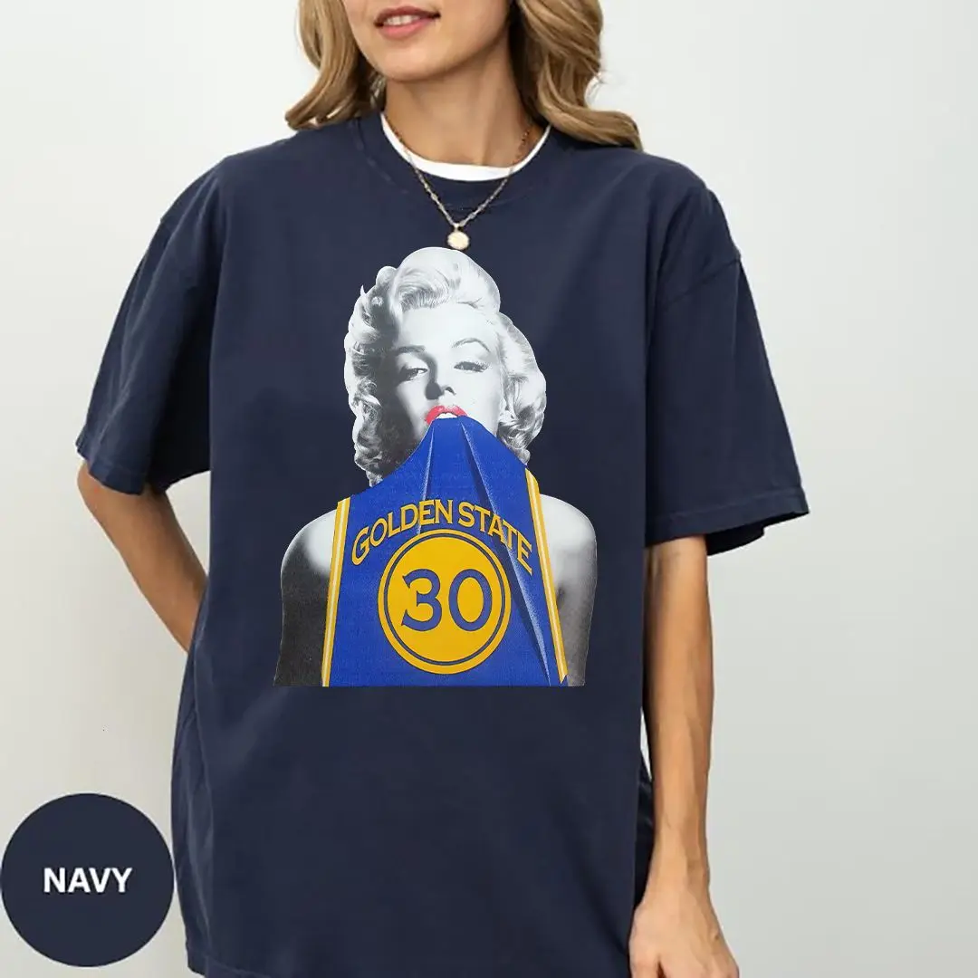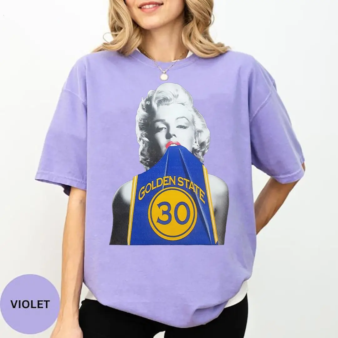 5. Marilyn Monroe in Steph Curry Warriors Jersey Shirt, Retro Celebrity Graphic Tee, Men’s & Women’s Fan Outfit, Comfort Colors T-Shirt.