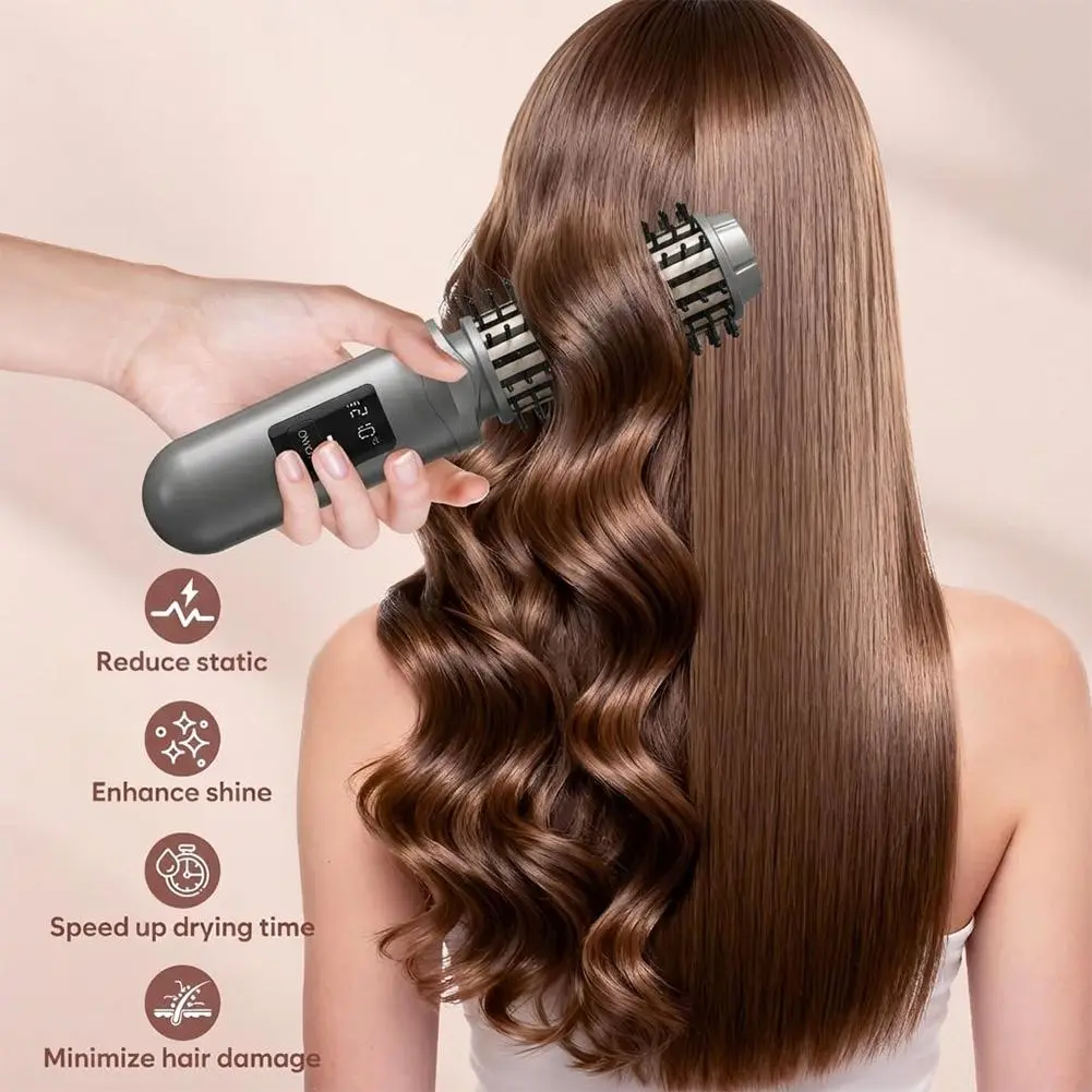 This versatile tool combines a hair curler and straightener in one. It features a rechargeable hot brush with an LED temperature display. Perfect for travel, this cordless styling tool ensures smooth, lasting curls. 🌟