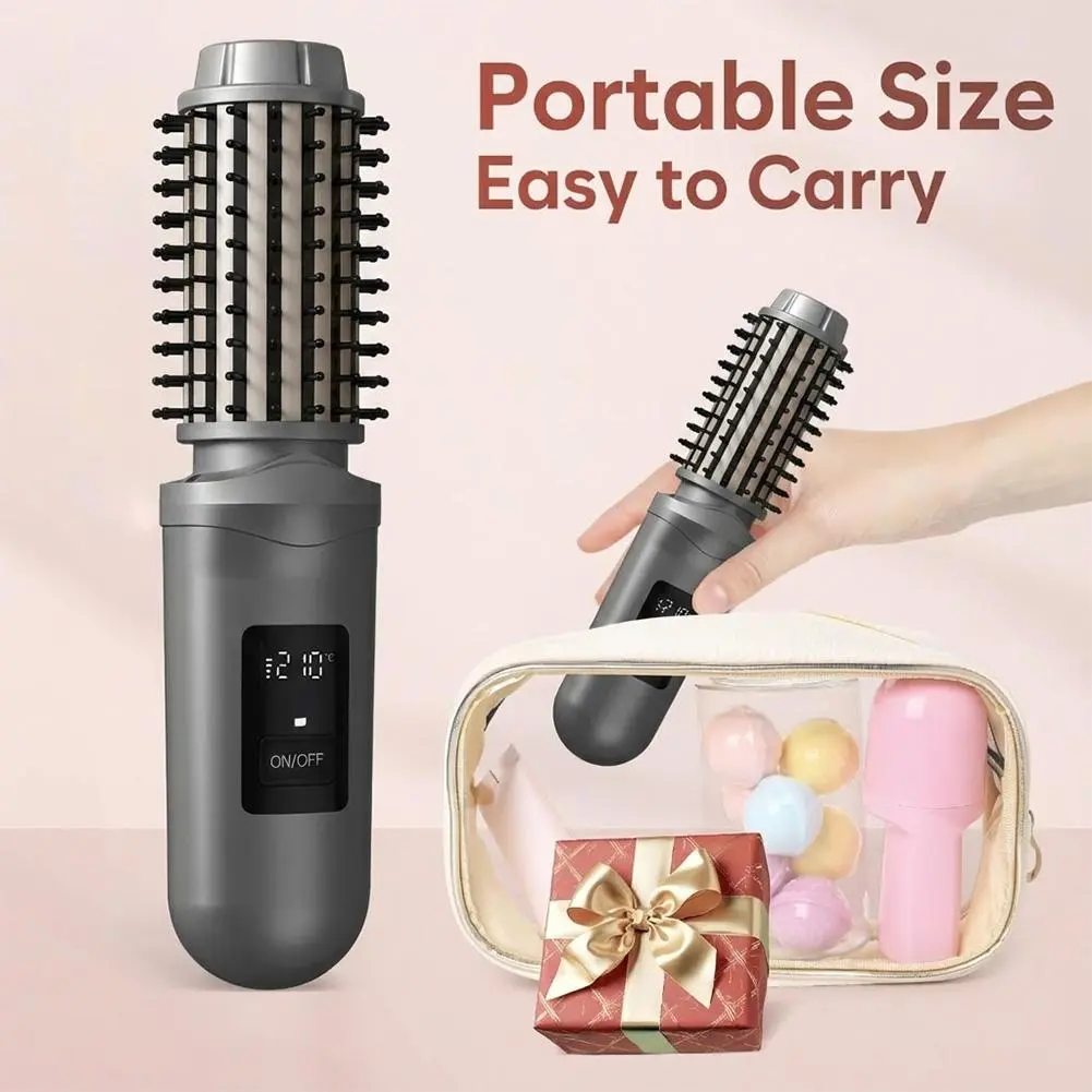 the curl collective Portable Wireless Hair Curler & Straightener 2-in-1, Rechargeable Hot Brush with LED Temperature Display, 3 Heat Levels & Fast Ceramic Heating | Travel-Friendly Cordless Styling Tool for Smooth, Lasting Curls