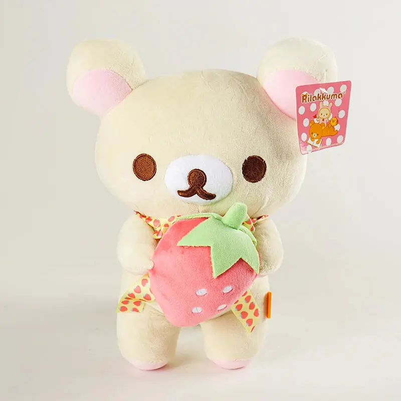 White Rilakkuma Plush Cute Animal Strawberry Cute Bear Stuffed Doll Kuma Plushies Kawaii Room Deocr Toys Xmas Gift for Kids