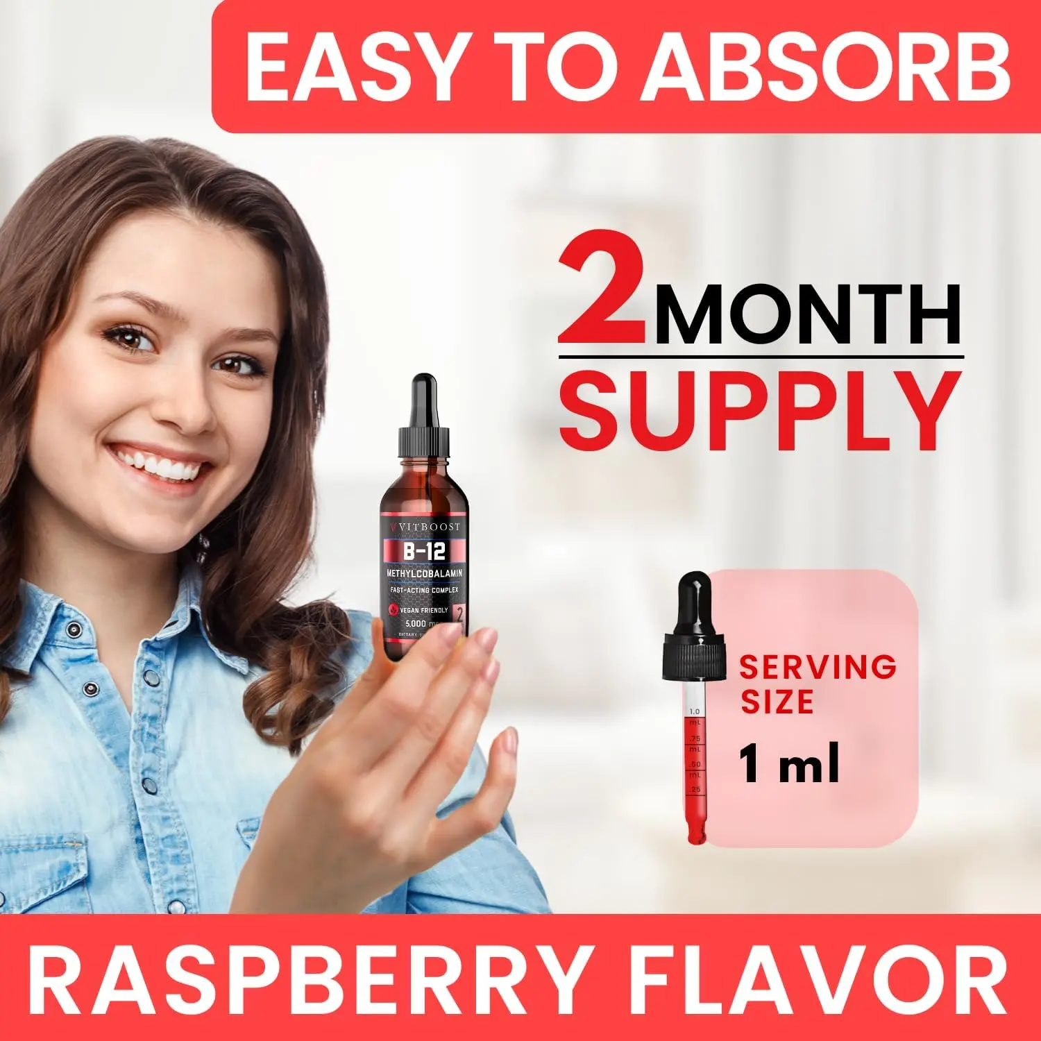 ·️FLAVORFUL B-12 / NO MORE INJECTIONS: This Raspberry Flavored B-12 Liquid Methyl cobalamin is an easy-to-take and delicious liquid formula that is taken by the mouth. VitBoost Vegan Liquid B-12 Methylcobalamin sublingual liquid is absorbed by the blood vessels in the mouth; which is often better for anyone who may have trouble absorbing this vitamin from the stomach. Its liquid form makes it highly absorbable and ultra-potent.