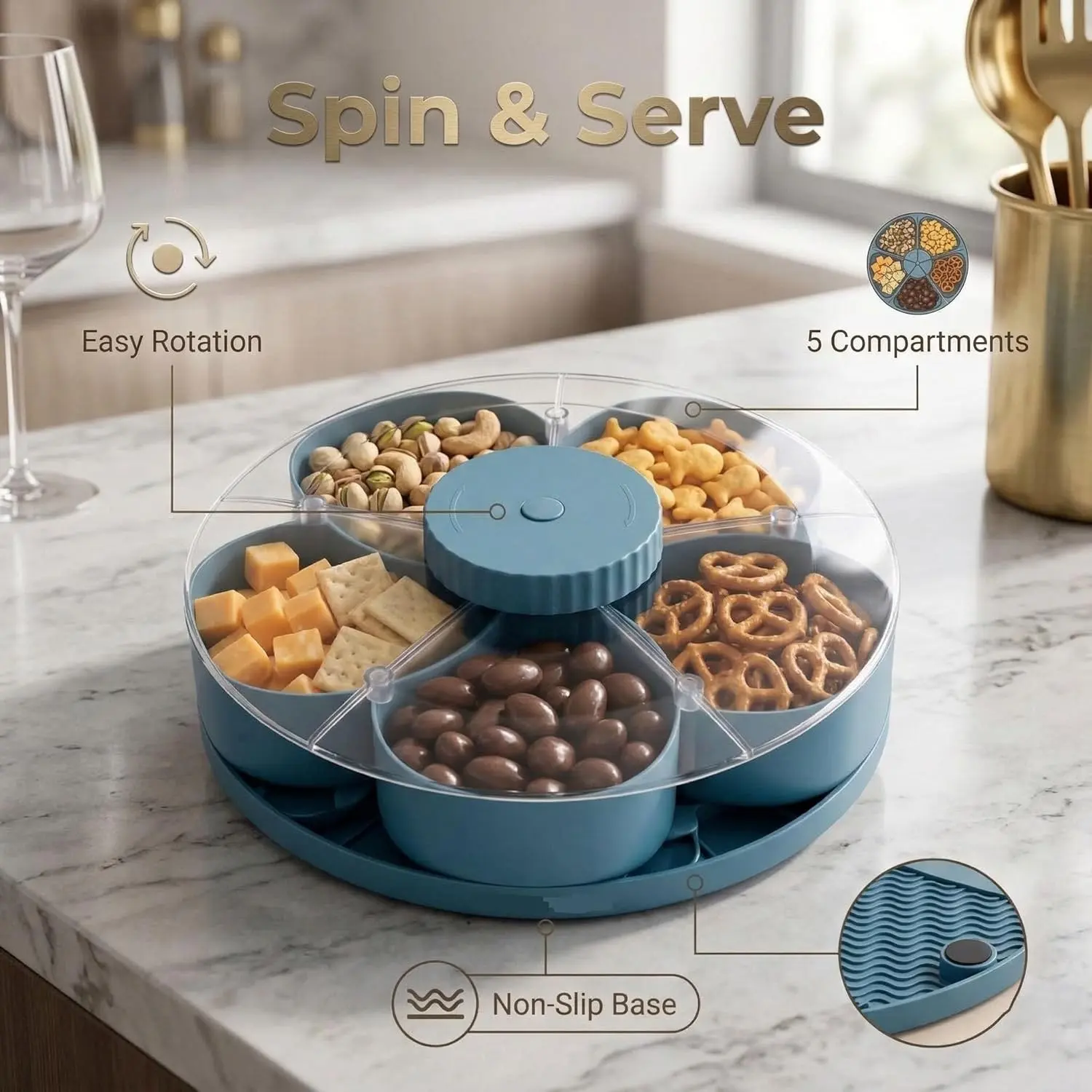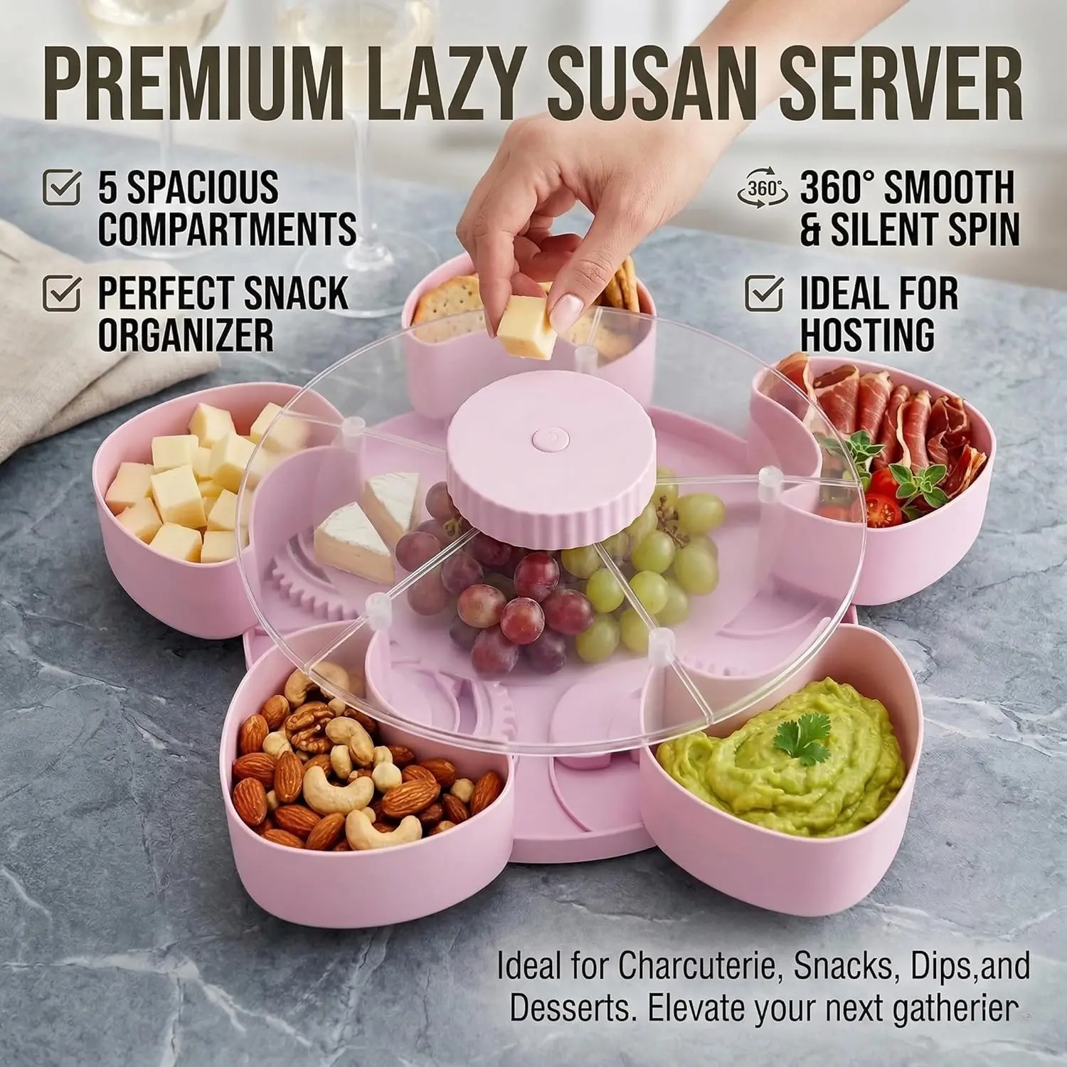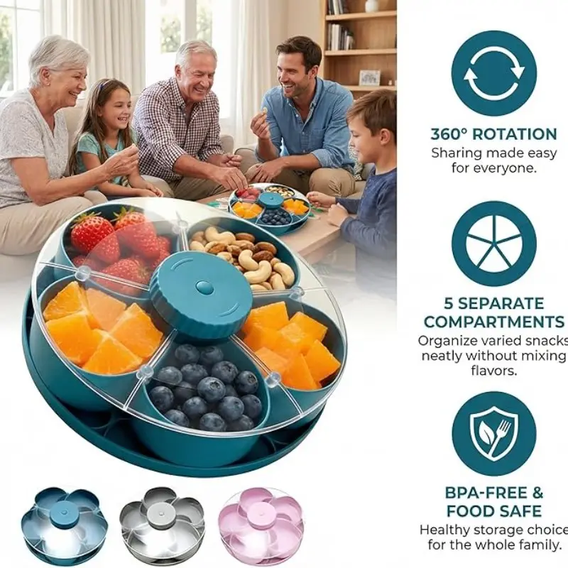 【Rotatable Design】: Easily access snacks and dips with the rotatable tray, perfect for parties and gatherings.
