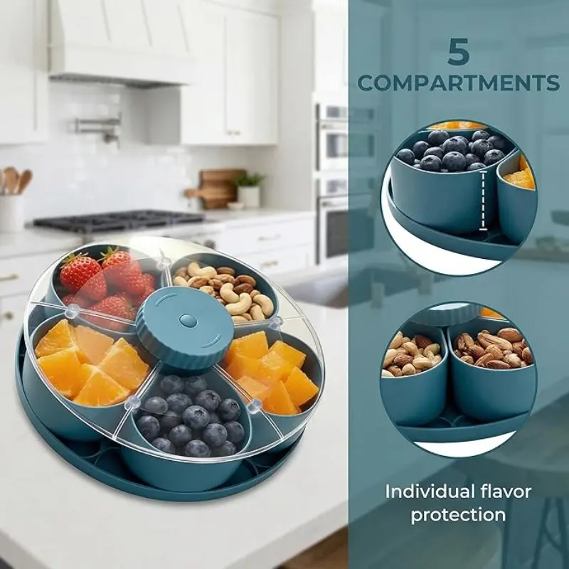 Rotatable Tray for Snacks, Dip Sauces, Party Appetizers, Covered Lazy Susan, Vegetable Storage Box, Kitchen, Travel, Picnic