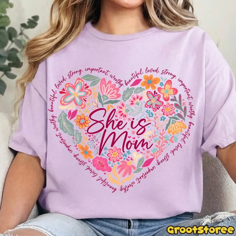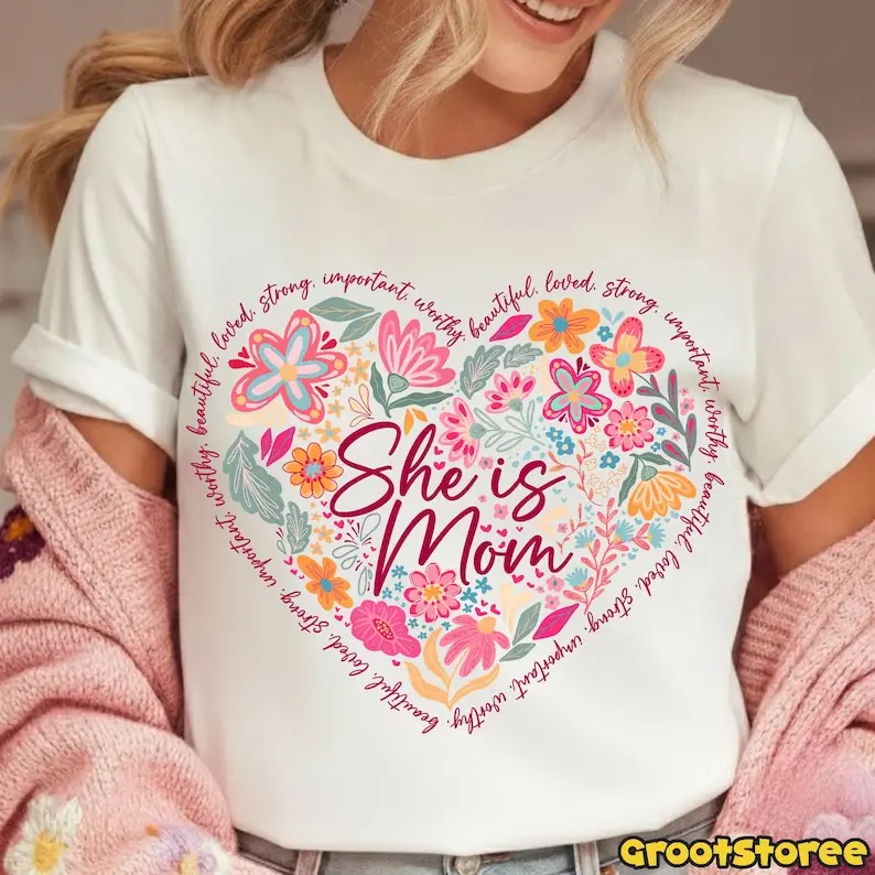 Boho Floral Mama T-shirt, She Is Mom Quote Design, Abstract Mom Adjectives Png, Mother’s Day Sublimation Shirt PNG, Digital Download