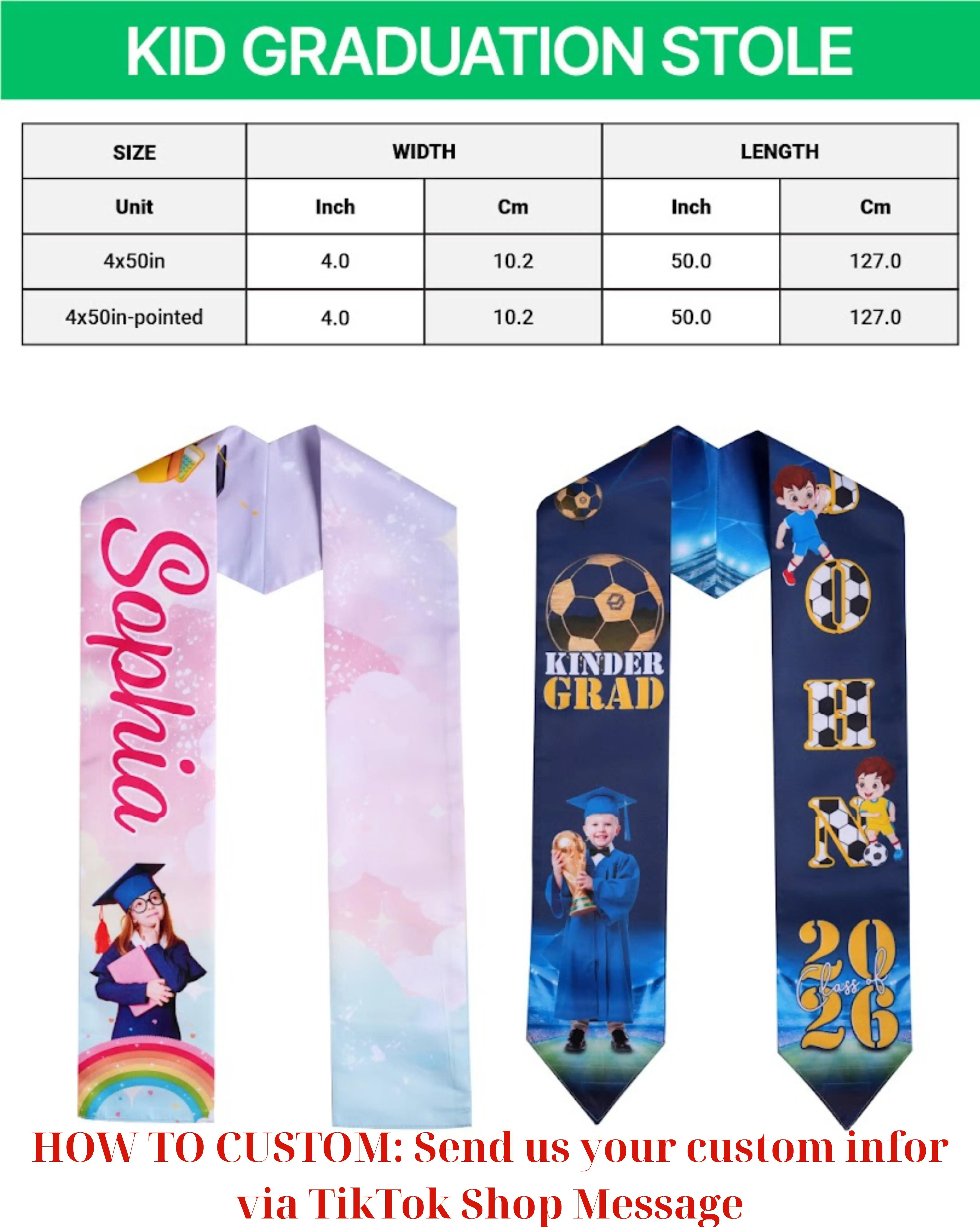 Stand out on your big day with a custom Graduation Stole designed just for you. Perfect for both kids and adults, this personalized sash is a meaningful keepsake to celebrate your academic journey.