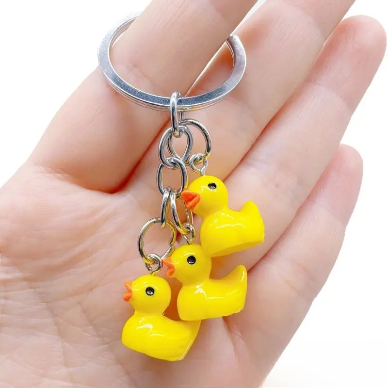 ·🦆 Adorable Duck Family Design: Three mini 3D yellow rubber ducks with glossy finish and cute details, bringing a playful, cheerful vibe that's trending on TikTok cute animal accessory feeds.