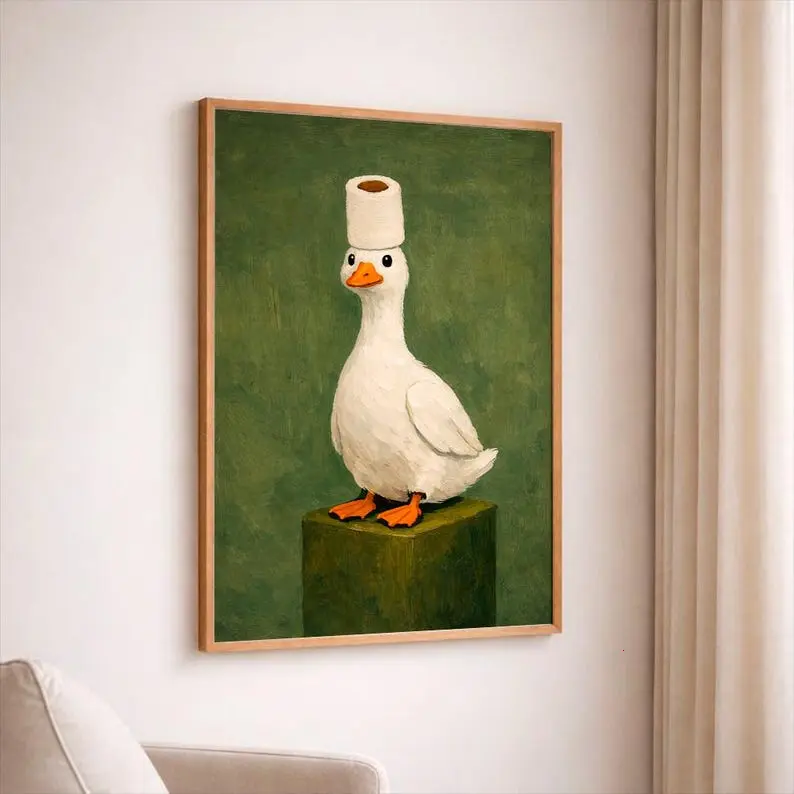 [Sale up to 50%] [Free Ship] Duck poster, funny bathroom wall art, humorous animal print, vintage style decor, quirky home artwork, unique gift idea