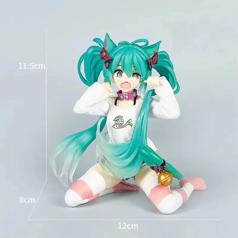 Hatsune Miku Model Anime Girl Figures Cat Ear Sitting Posture Short Sleeved Pajamas Figurines Car Decoration Doll Kids Toys Gift
