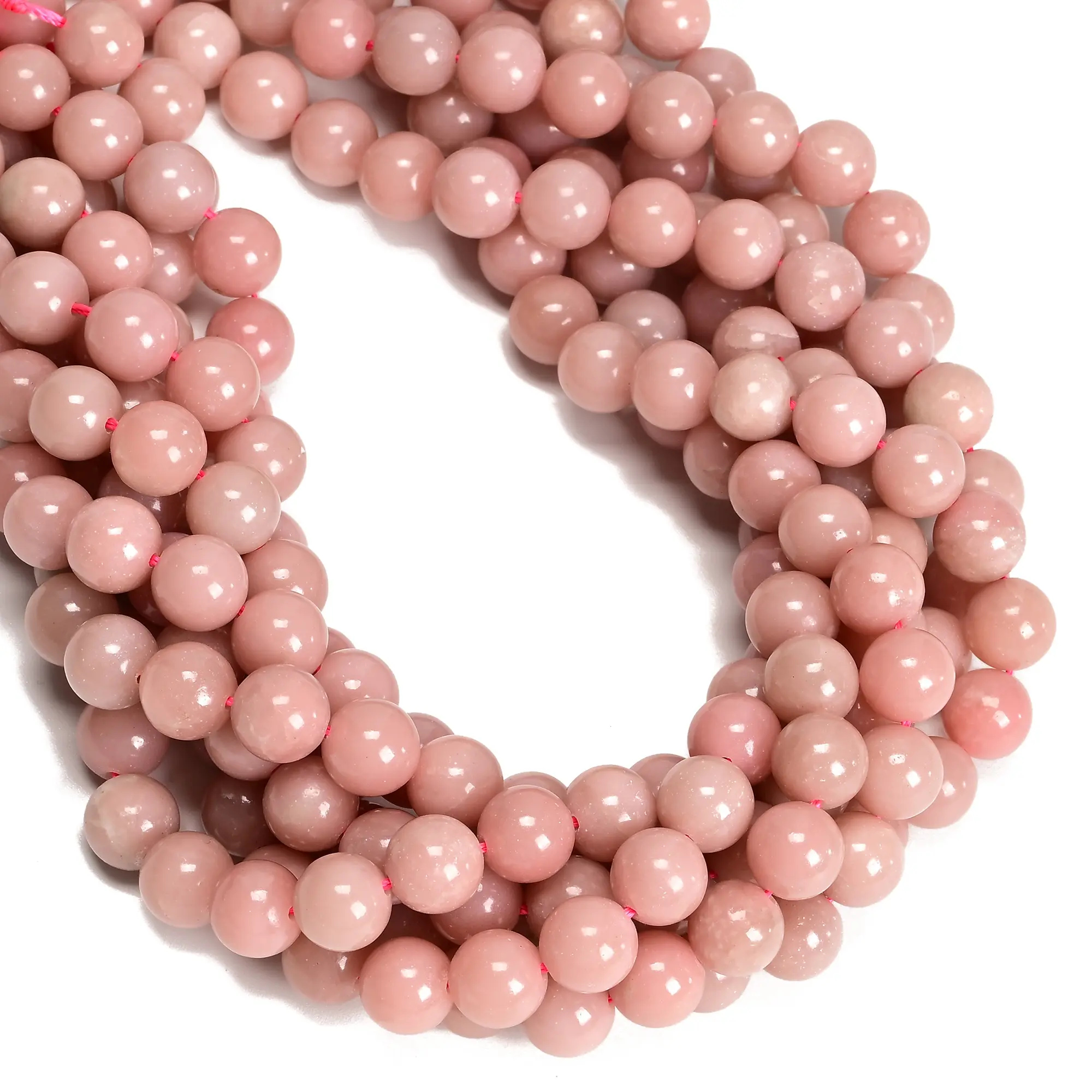 Natural Pink Opal Smooth Round Beads Size 6mm 8mm 10mm 15.5 '' Strand